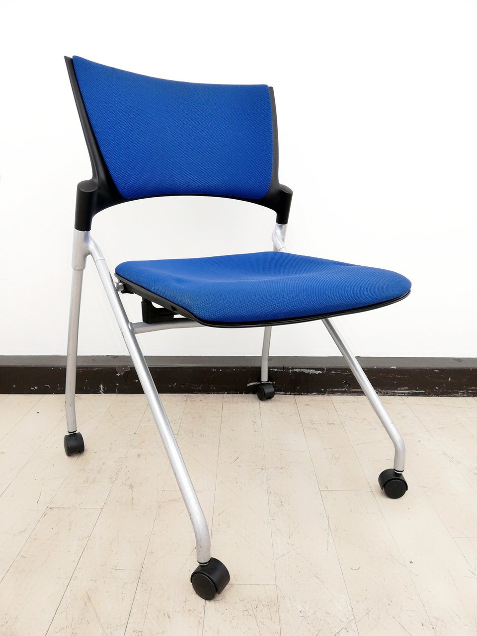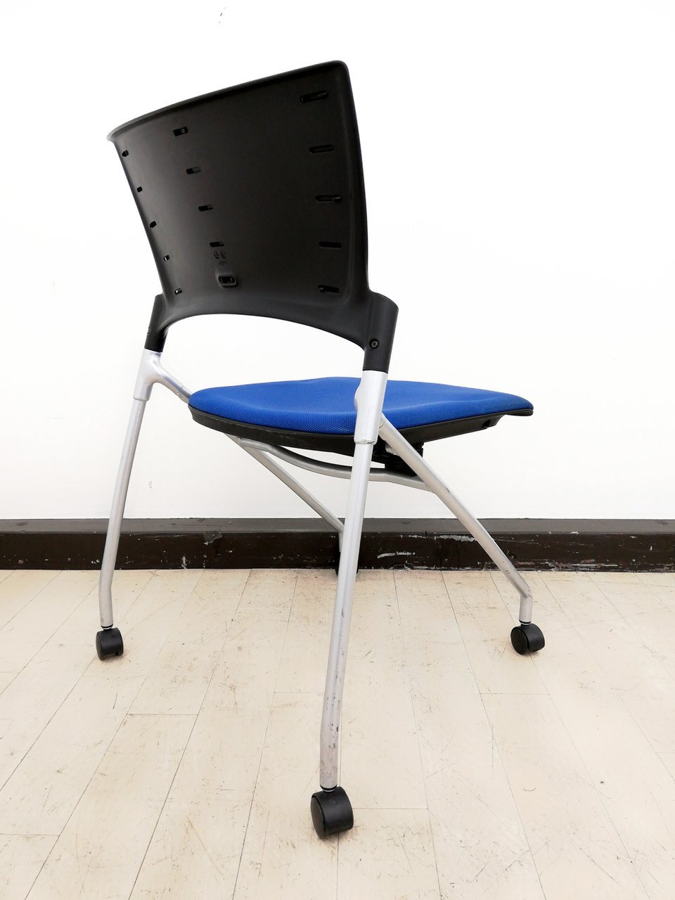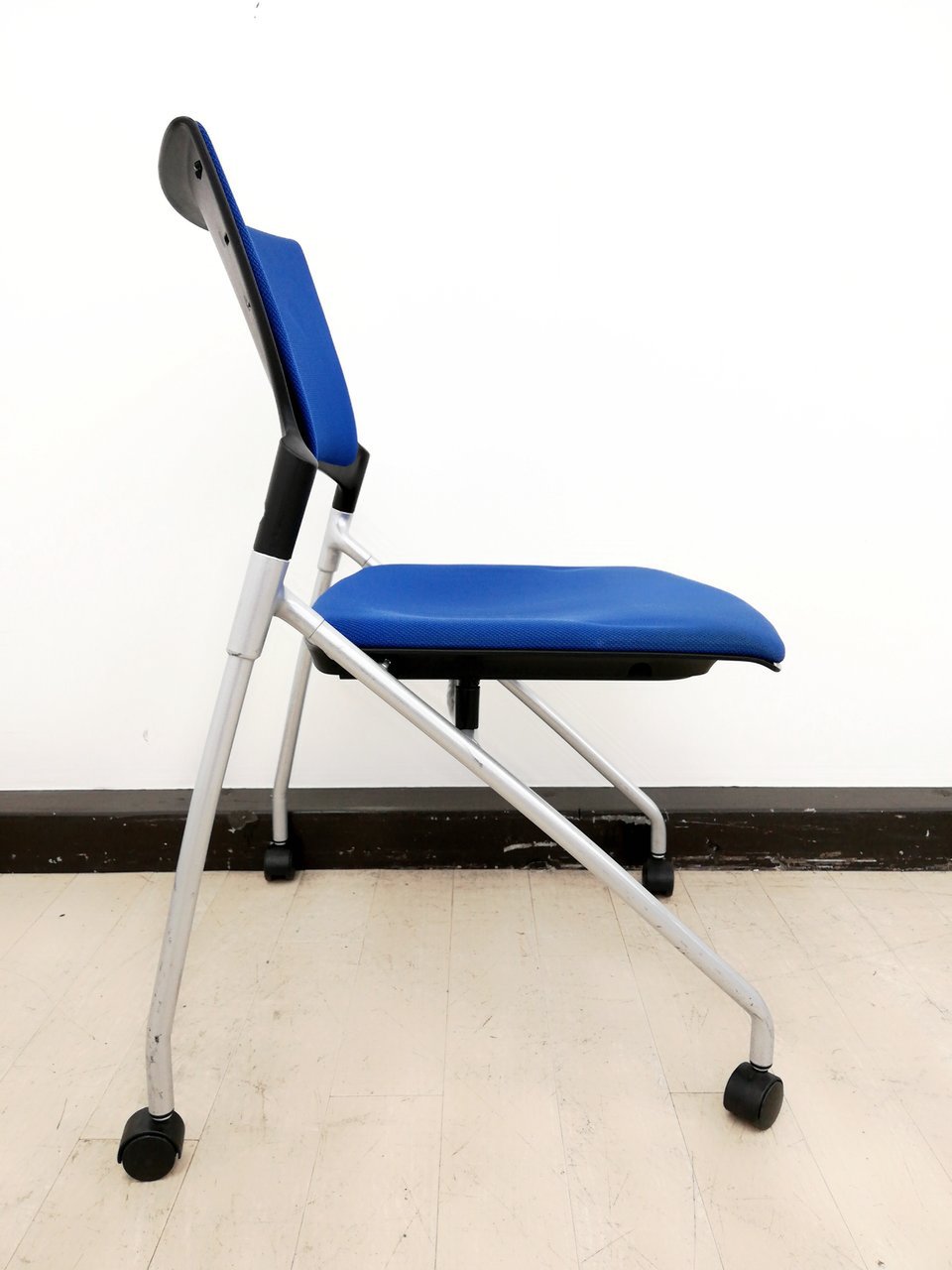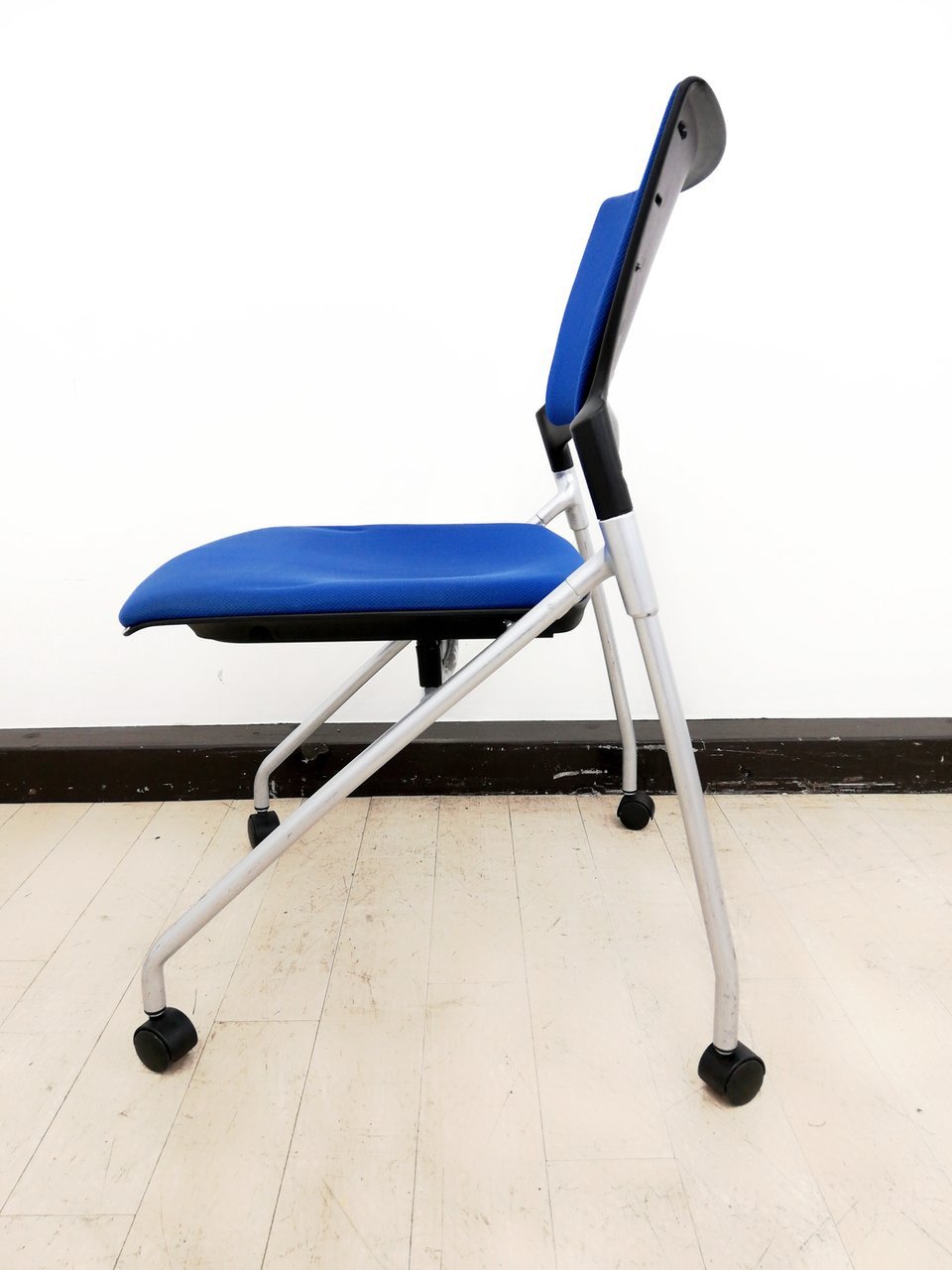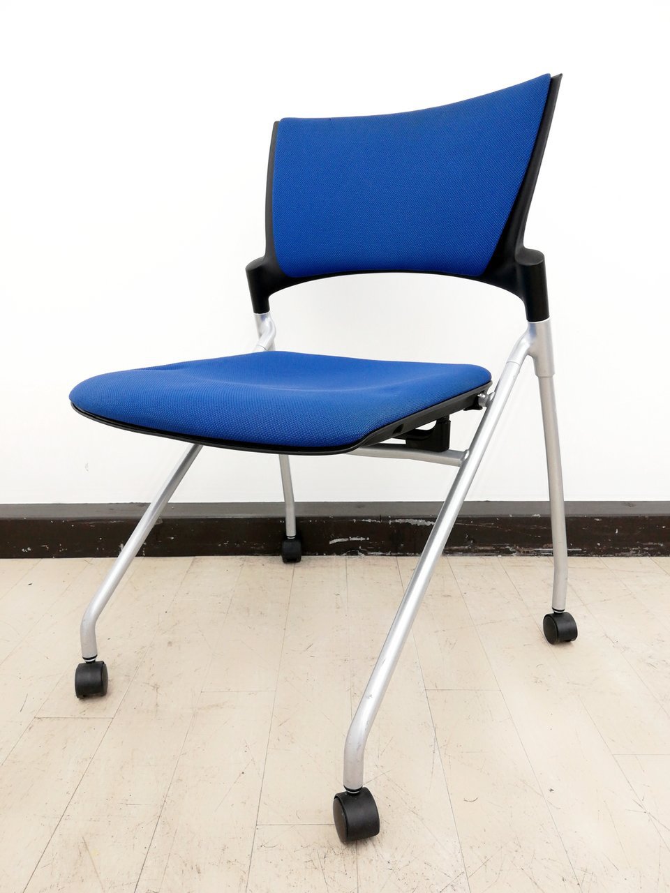 【関東倉庫在庫品】【フレキシブルに使える!平行ネスティングで省スペース化!】■イトーキ(ITOKI)製 マノス(MANOSS) ネスティングチェア ミーティングチェア ■背パッド付 ■キャスター付 ■ブルー【弊社使用欄:A01014525】【ECBMC】