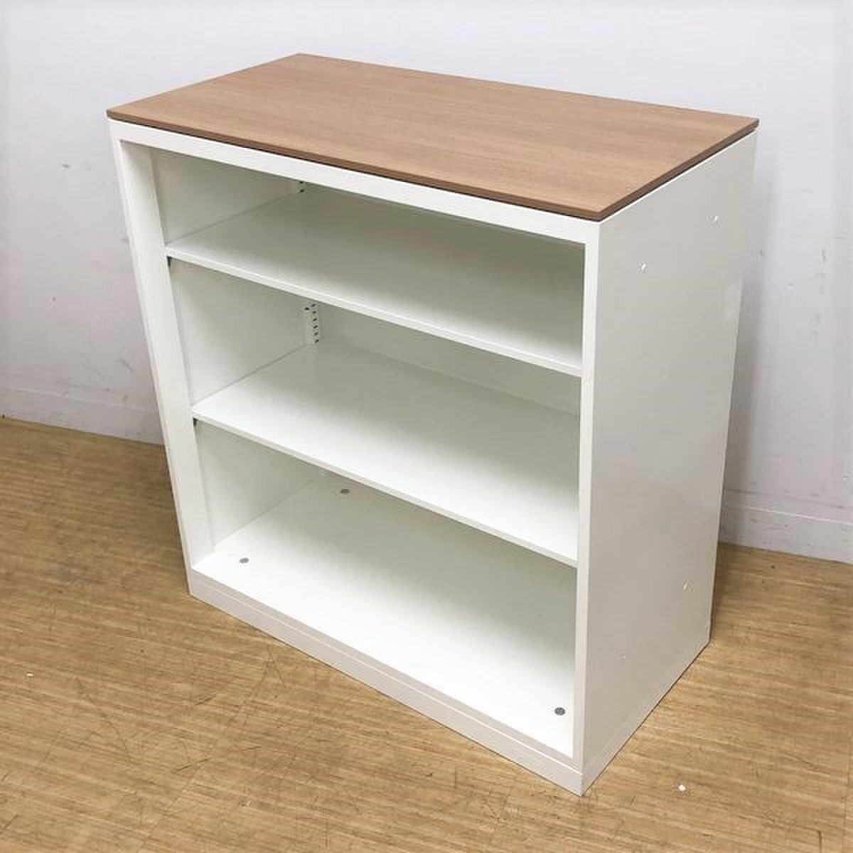 【オフィスの書類をスッキリ整理! 扉の無いタイプなので資料探しがラクラク!】■オカムラ(okamura)製 レクトライン(Rectline)シリーズ オープン書庫 ローキャビネット ■色:ホワイト ※扉外し商品のため外し跡がございます。