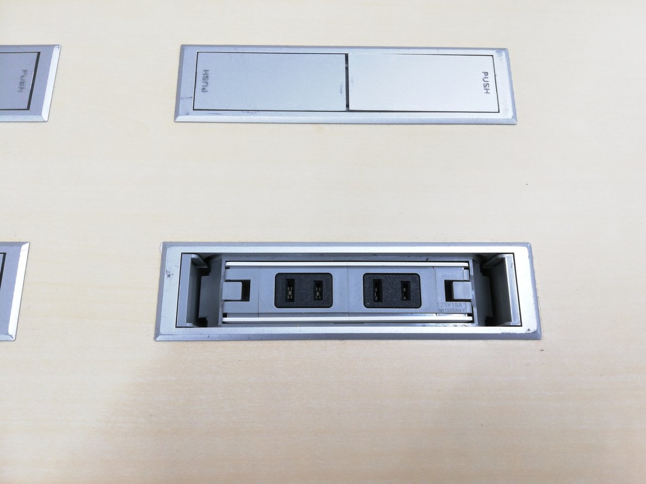 また、天板中央には電源コンセントが付属しておりますので、PCを用いてのミーティングにおススメ!※主電源は他から引っ張ってくださいね!
