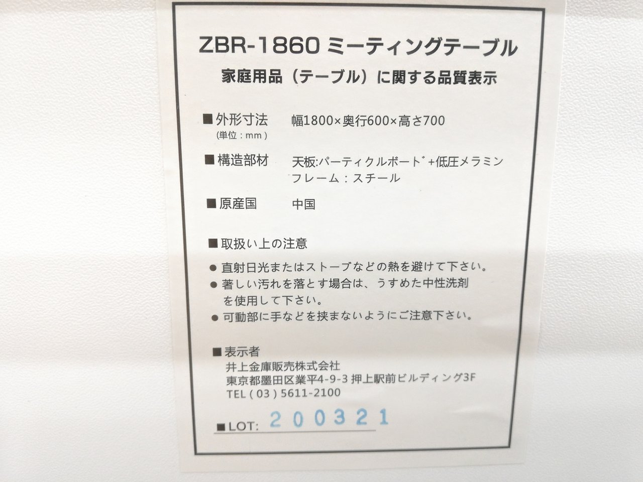 【中古】 ZBR-1860 井上金庫 スタックテーブル(長机/折りたたみ/会議用) 328564