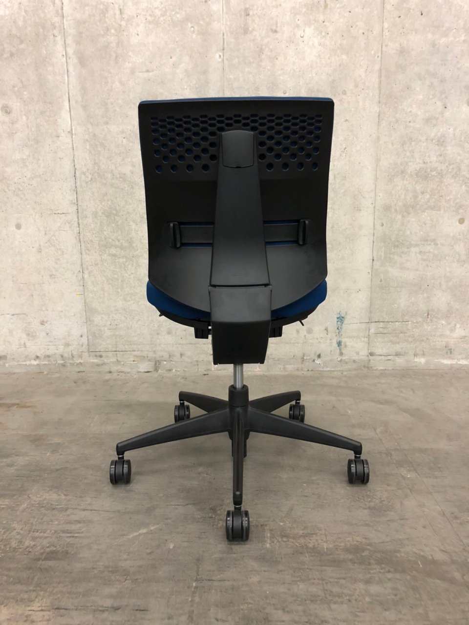 コクヨ ウィザード2 ローバック プルシアンブルー×ブラックフレーム 肘無しモデル コートハンガー付き 定番の使いやすいチェア オフィスバスターズ梅田本店