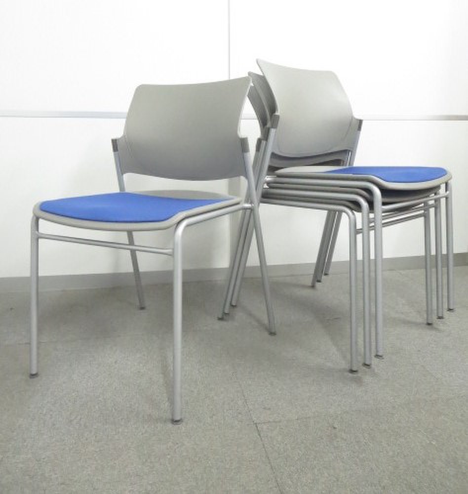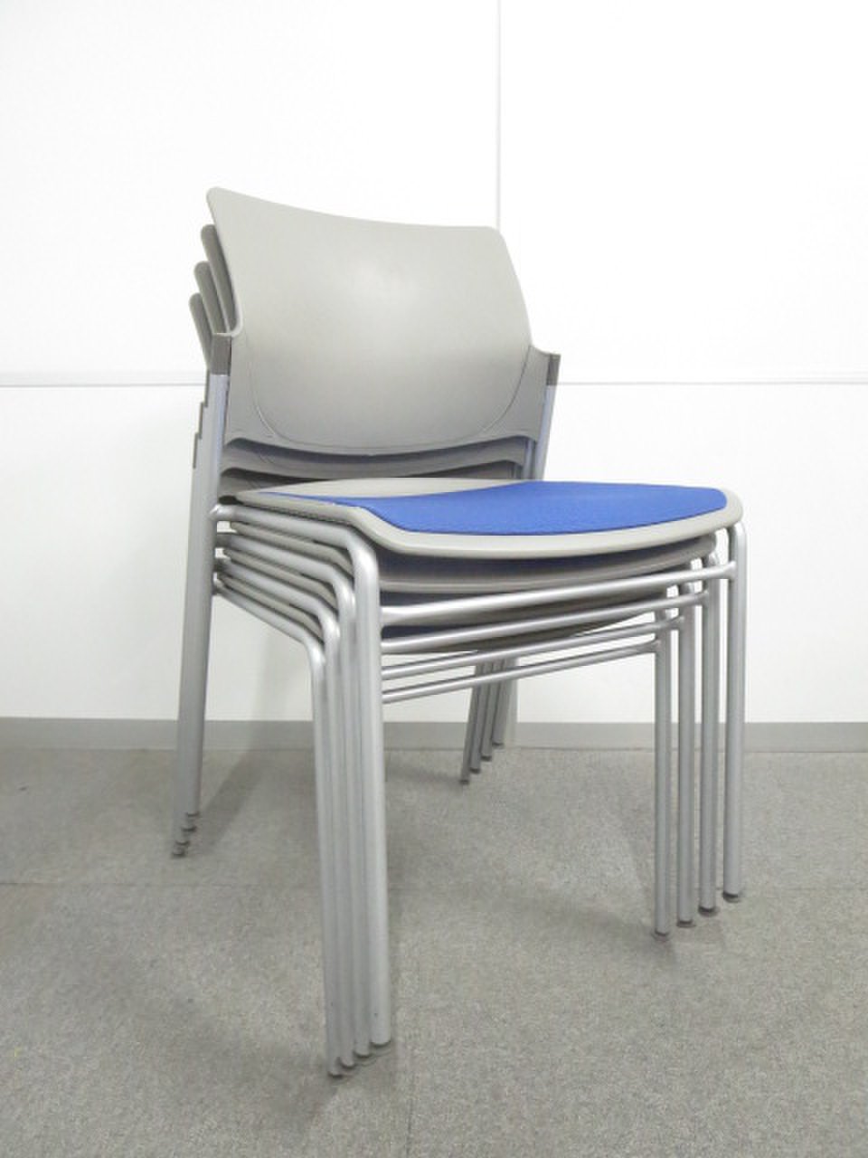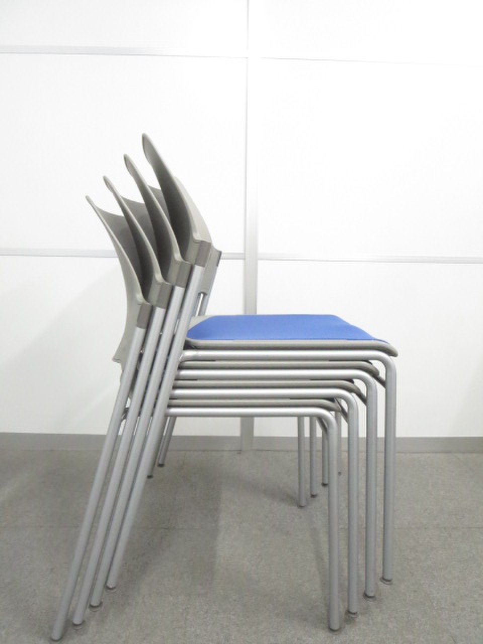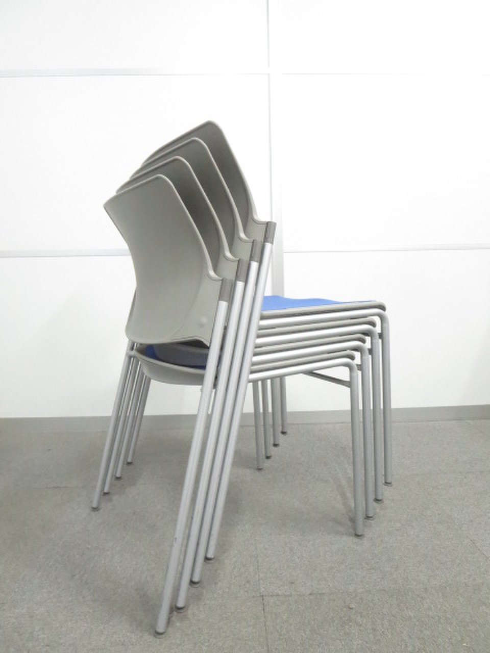 【コンパクトに使いやすい!】■オカムラ製 スタッキングチェア ブルー- 川崎店