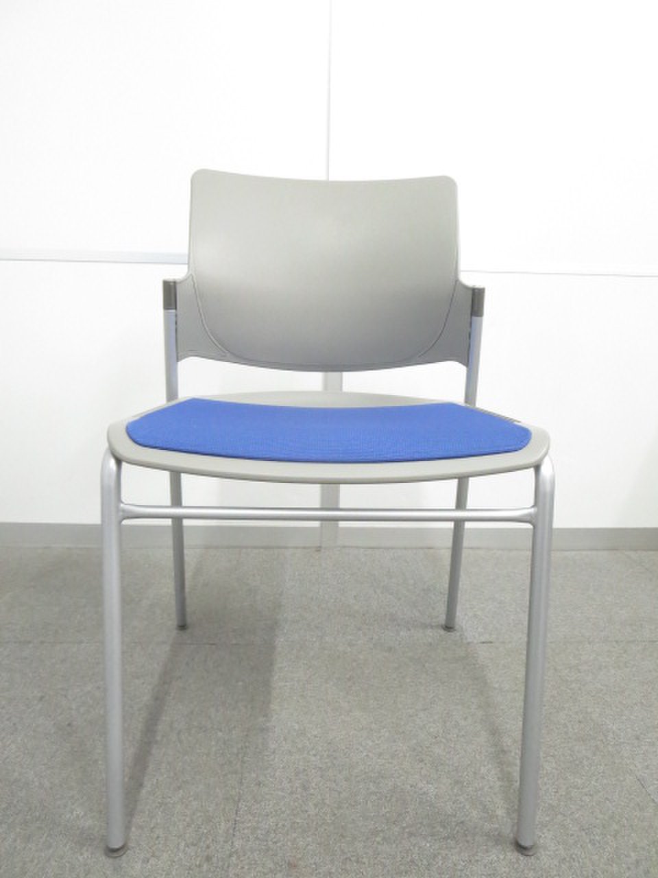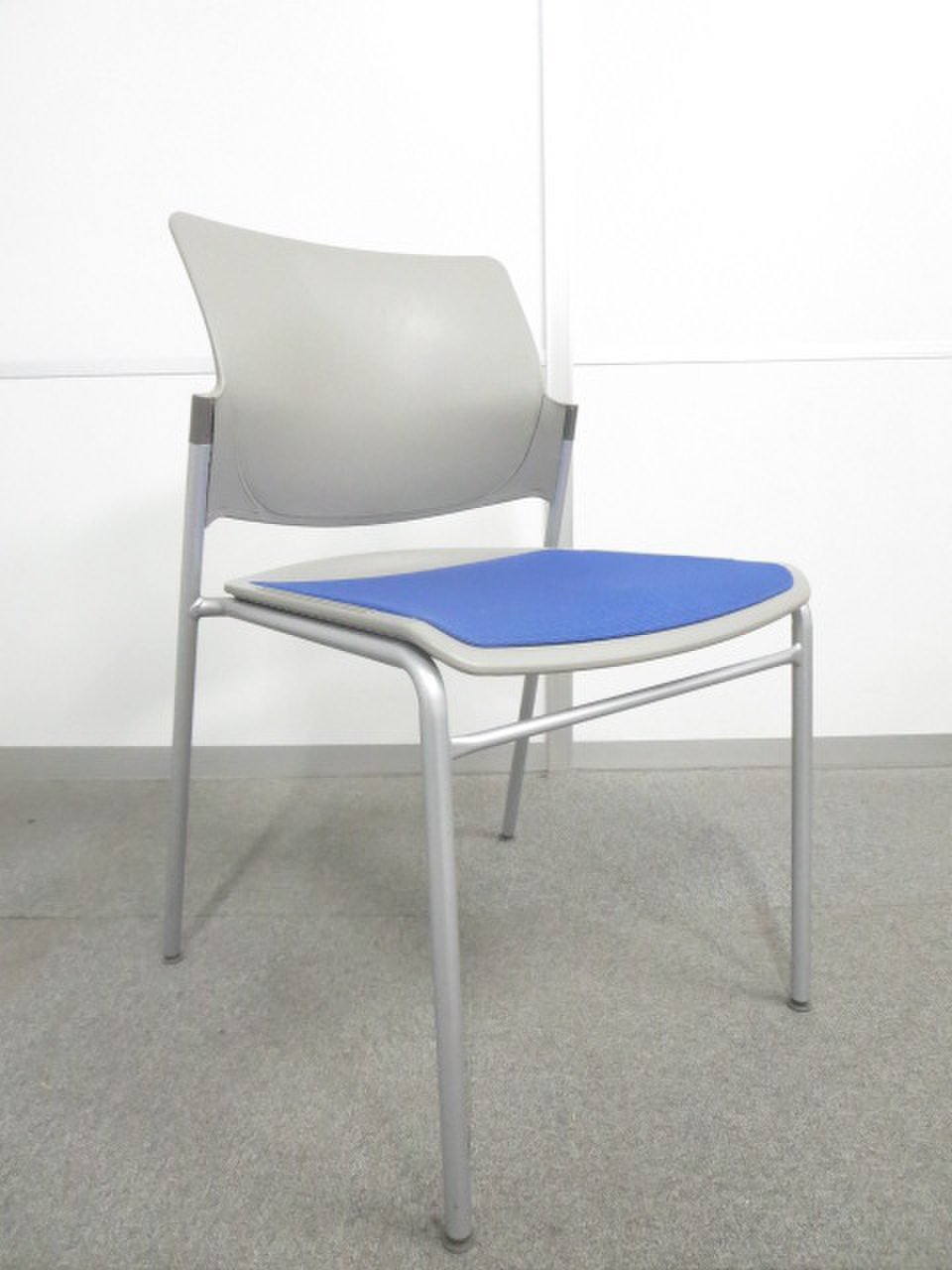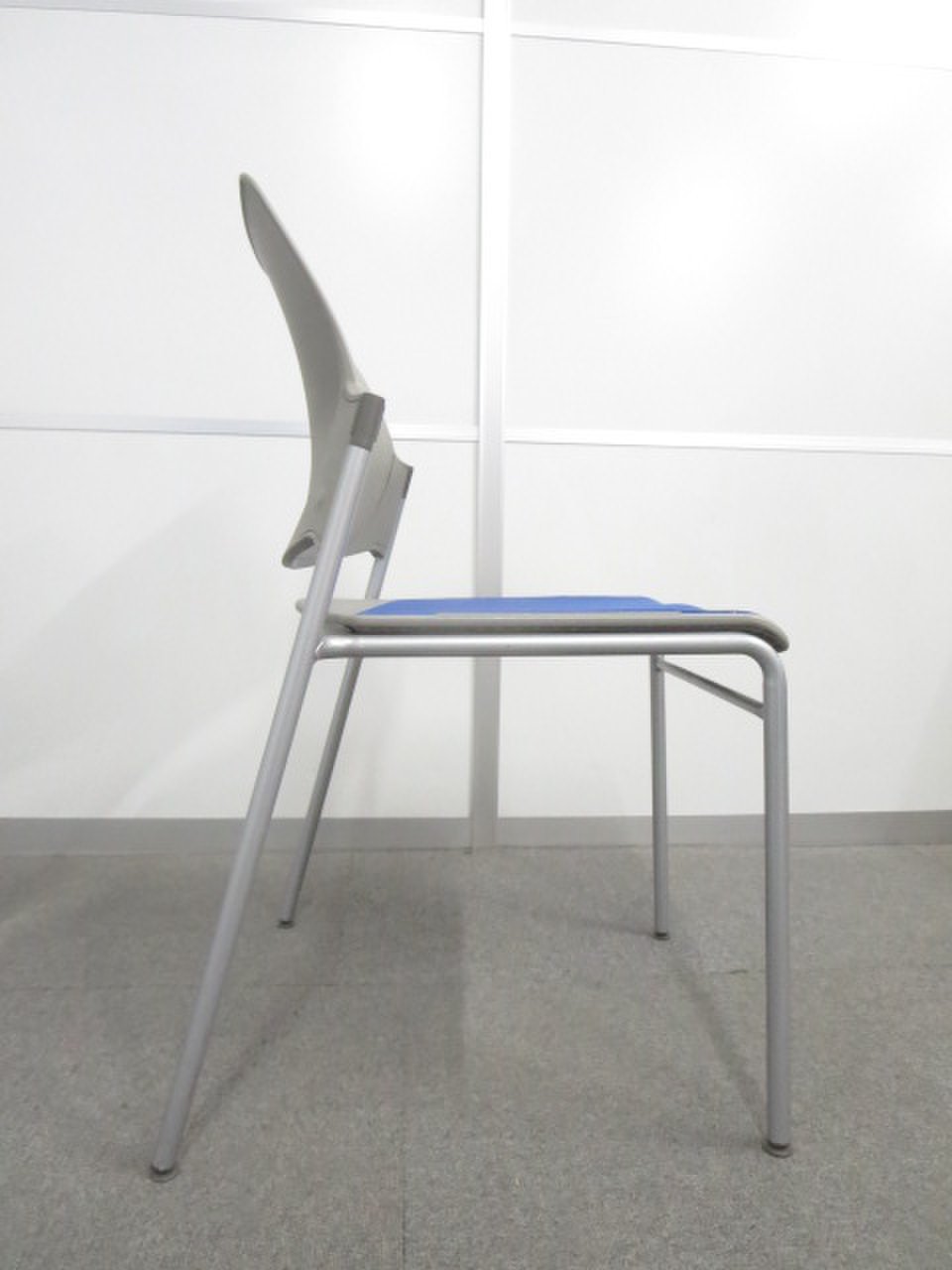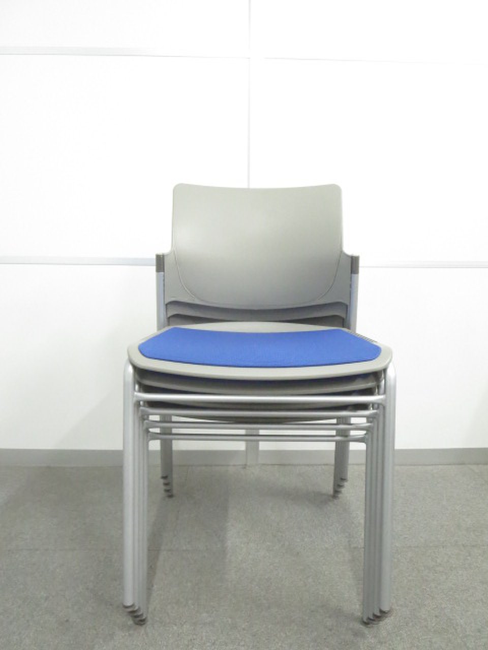 【コンパクトに使いやすい!】■オカムラ製 スタッキングチェア ブルー- 川崎店