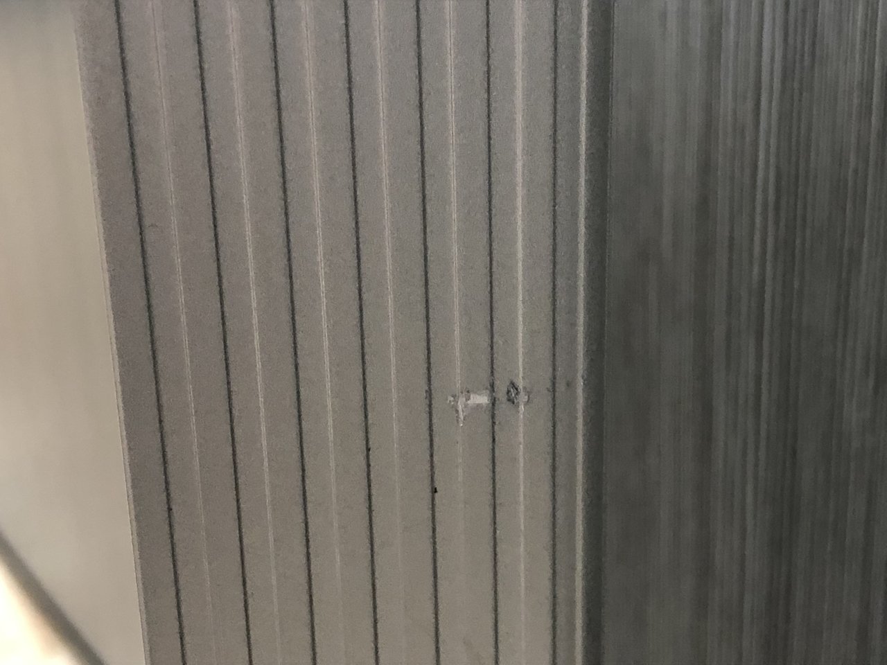 - あり黄ばみ・変色が広い範囲にうっすらある、または濃い黄ばみ・変色が一部ある。(例、天板、幕板、棚板、サイド部分、脚部等にある。)