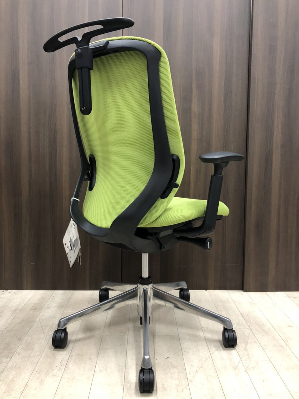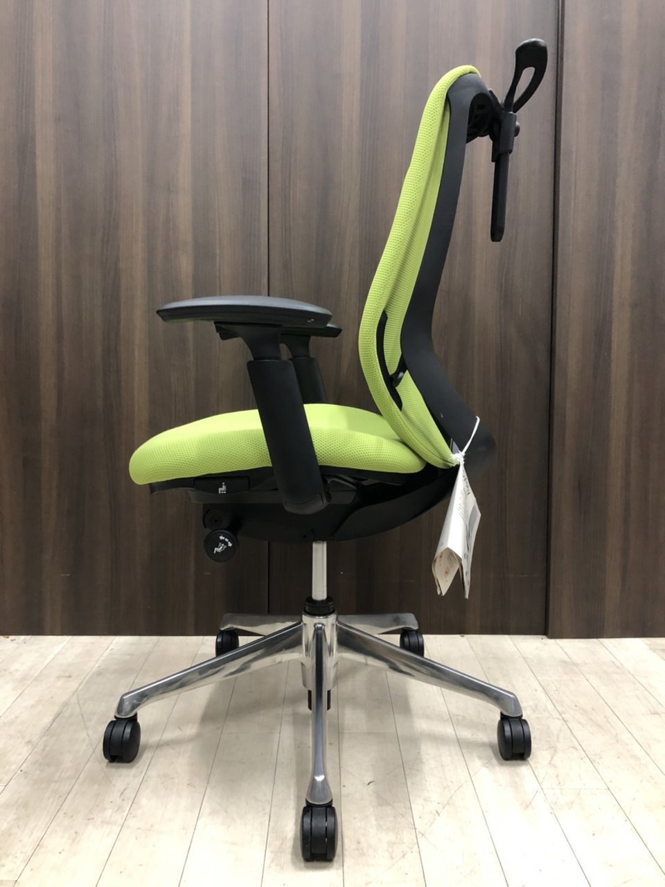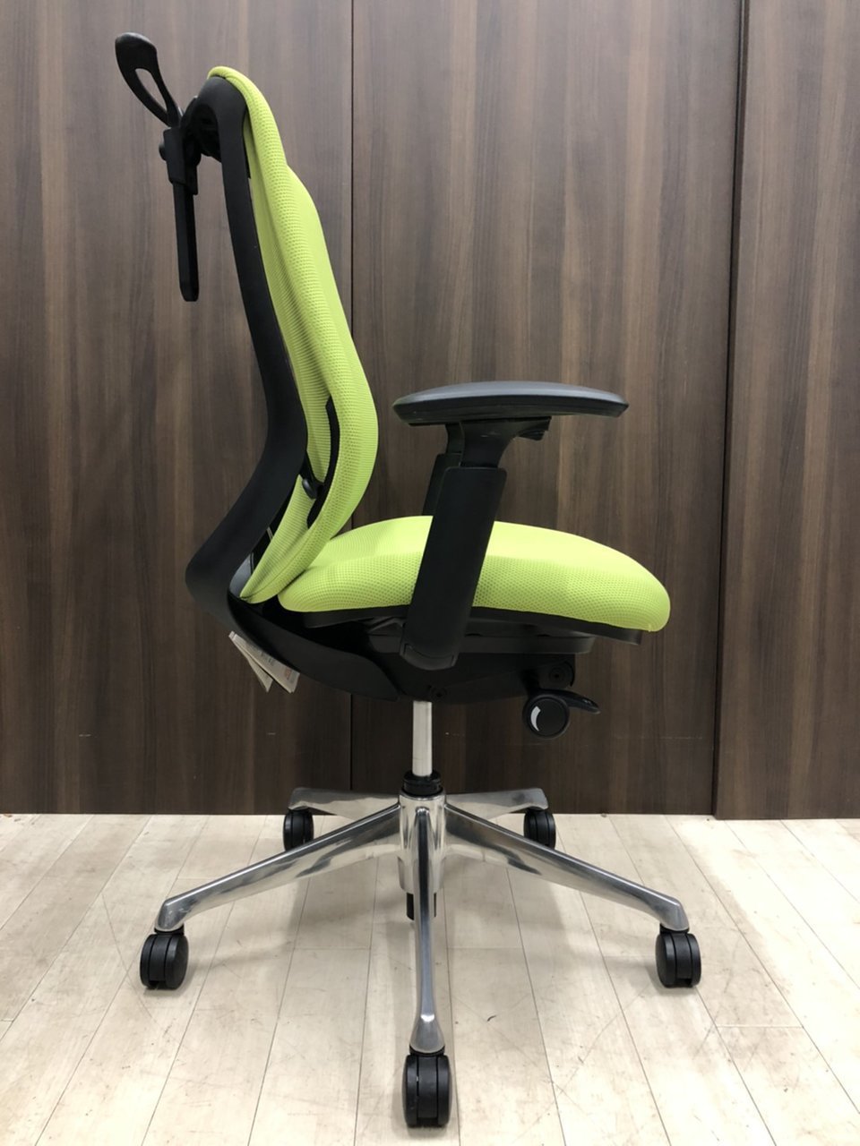 【人気のヘッドレスト付!集中作業にもオススメのワークヴェール付!】■オカムラ シルフィーチェア 可動肘付 ライムグリーン エクストラハイバック ■背のカーブを変えられる!新感覚のオフィスシーティング!【Okamrua Sylphy】★