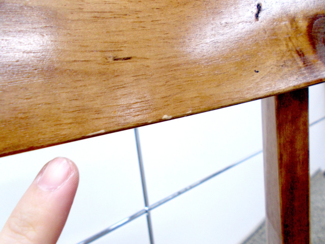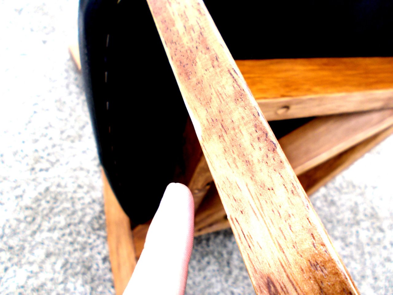 - かなり強い濃い黄ばみ・変色が商品全体にある。(例、座面・背もたれ、脚部等にある。)