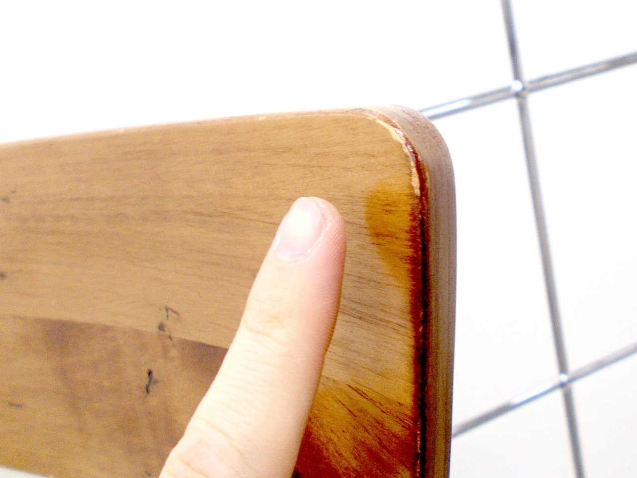 - かなり強い濃い黄ばみ・変色が商品全体にある。(例、座面・背もたれ、脚部等にある。)
