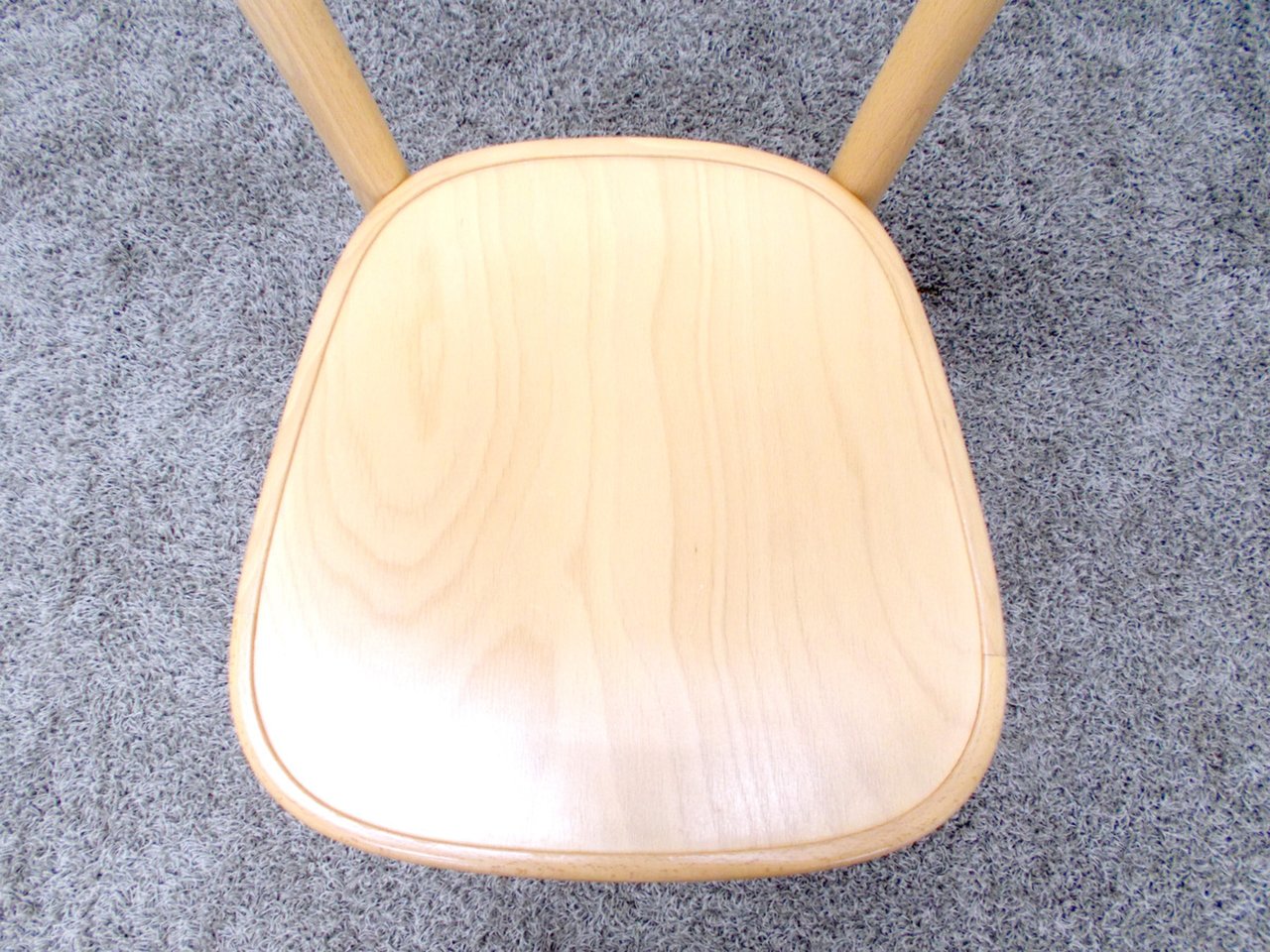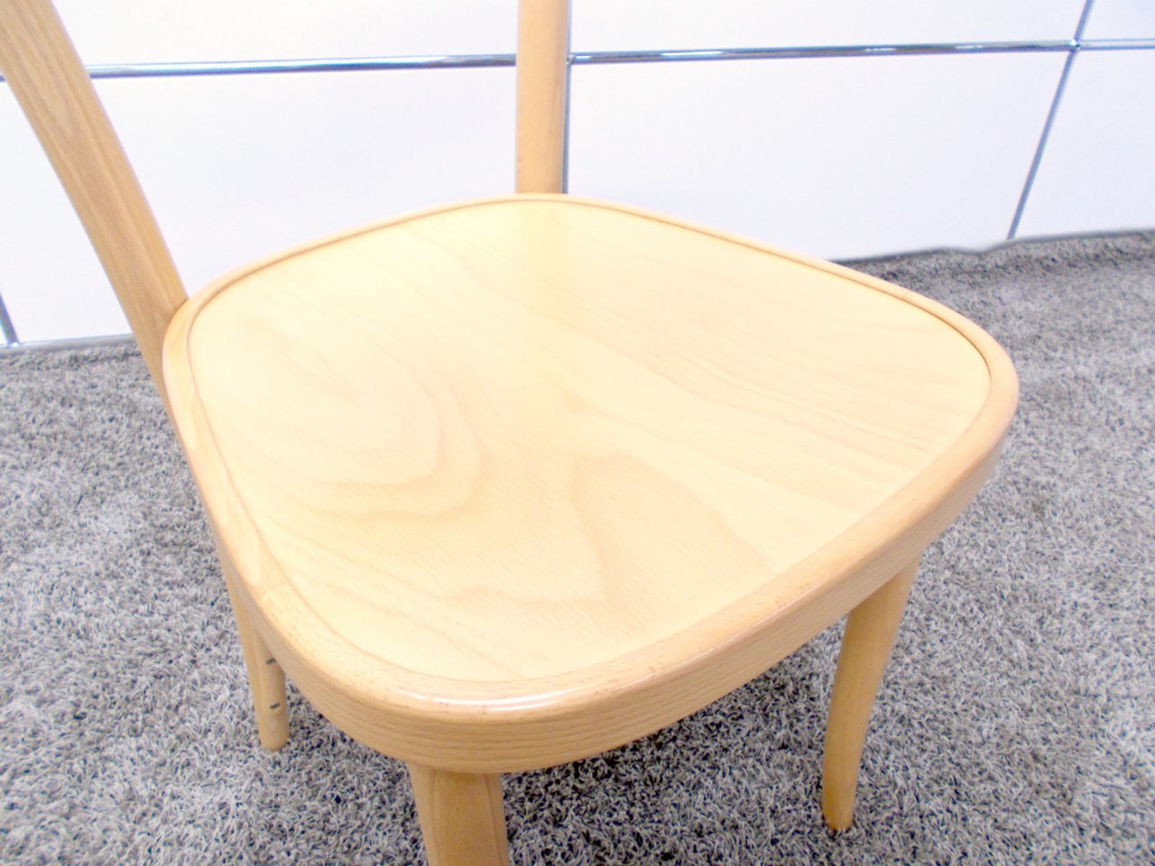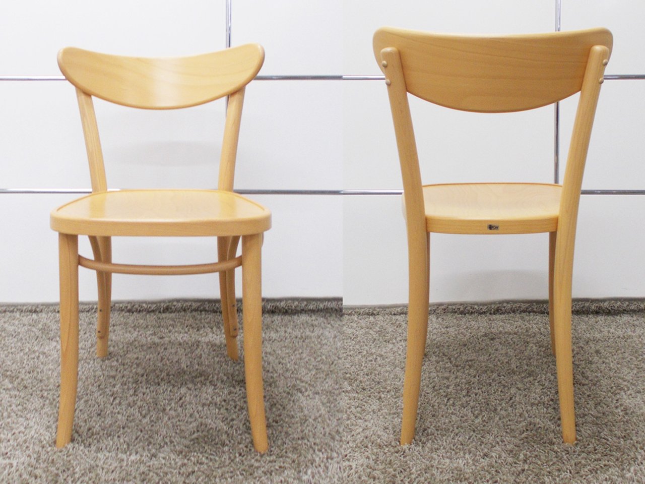 背もたれのなだらかな曲線とそこからのびる脚部に、四本の脚の間をくぐりながら座面にも接点をもつ装飾的なフレームの曲線は芸術的な粋にも達した見事さは全て高度な曲げ木技術によるもので、自然素材の木の可能性と職人の技術の高さに素材選びのこだわりを実感させられる逸品です。