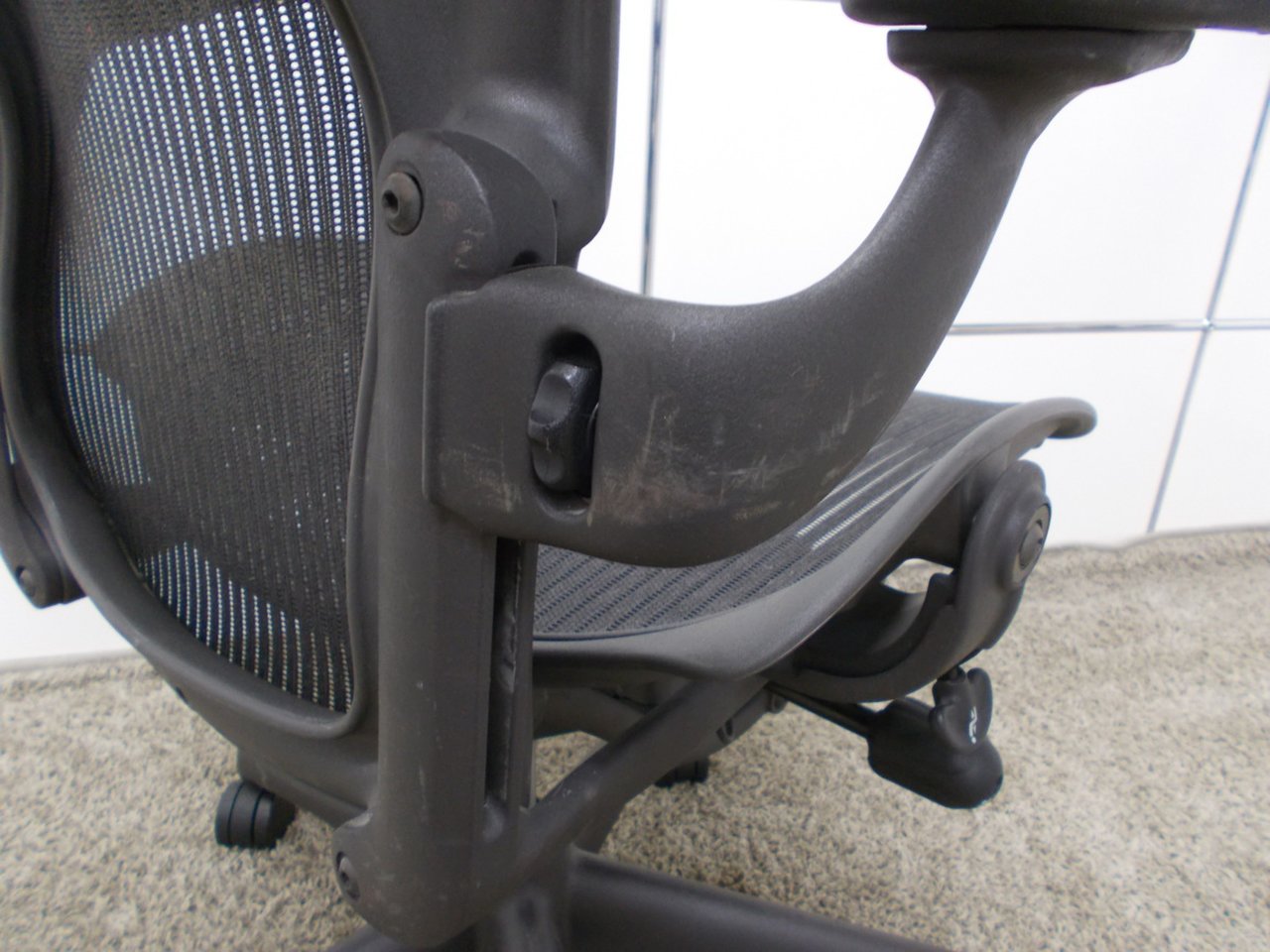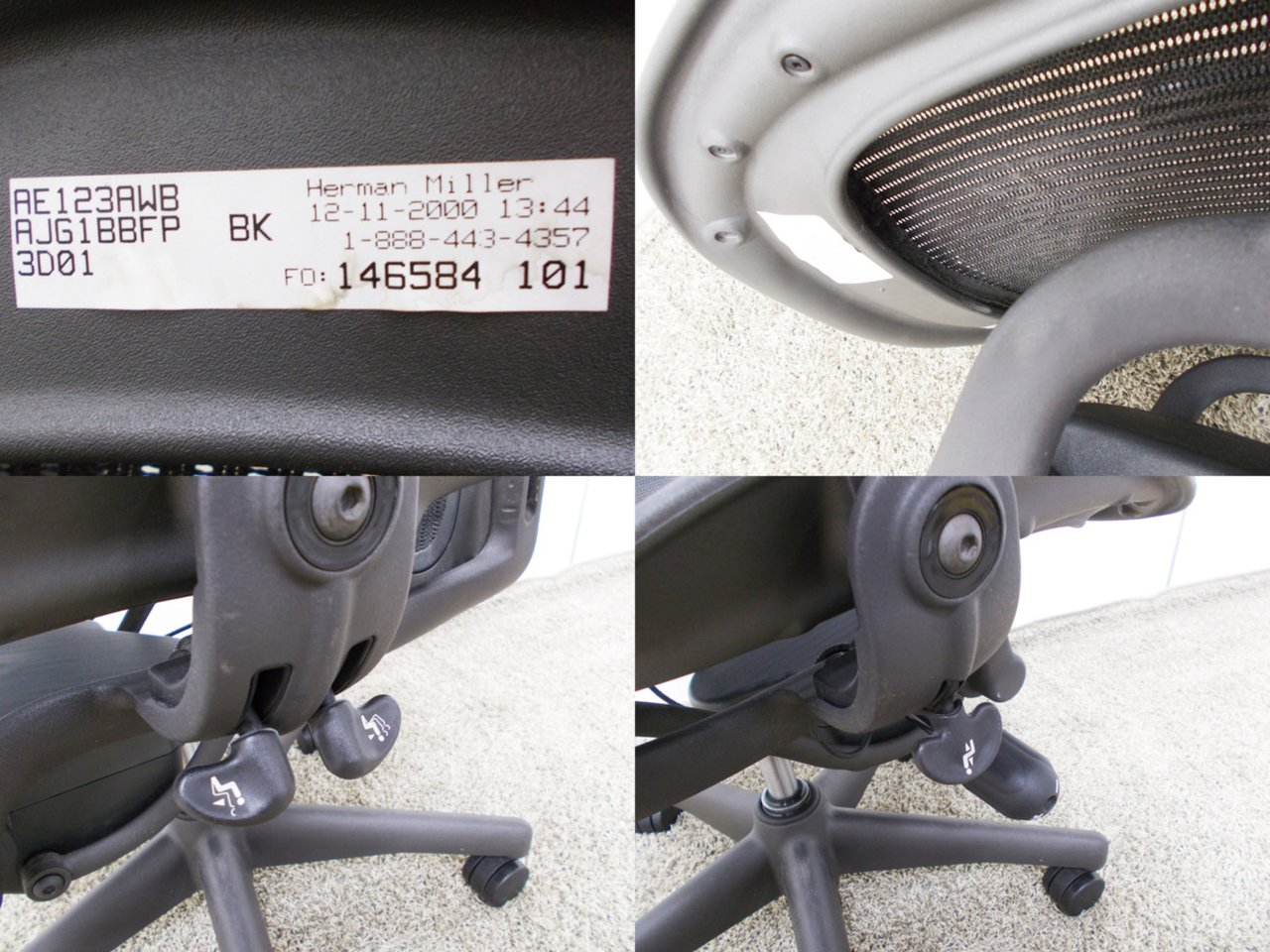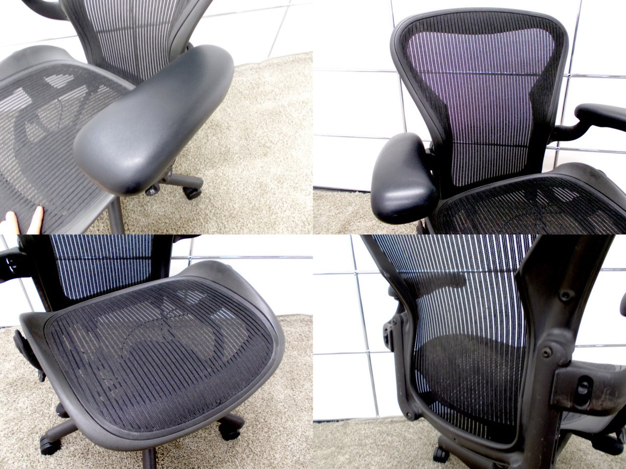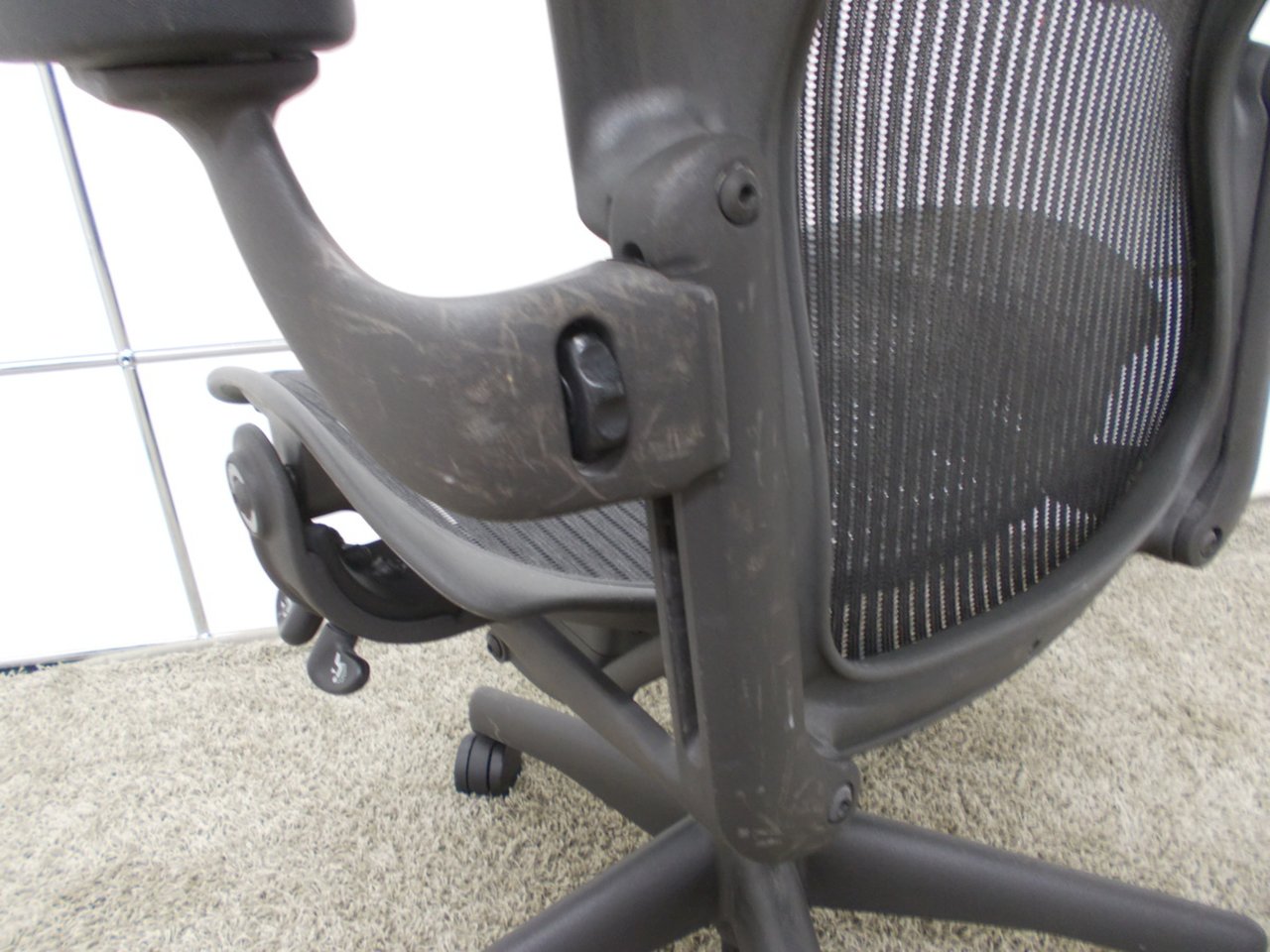 【★状態イマイチのためお安く!】■ハーマンミラー製 アーロンチェア Bサイズ 固定肘 ※キズあり・ランバーサポート無・昇降ガス圧弱めのためお安く!【訳あり特価品】