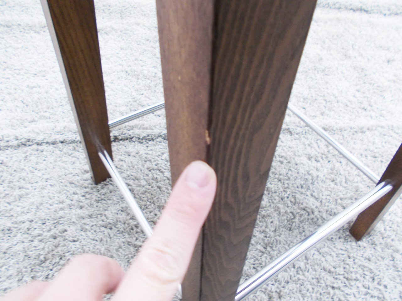 - かなり強い濃い黄ばみ・変色が商品全体にある。(例、座面・背もたれ、脚部等にある。)