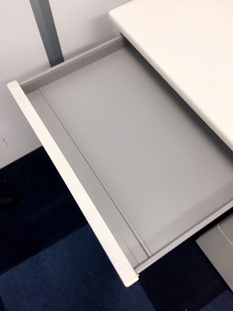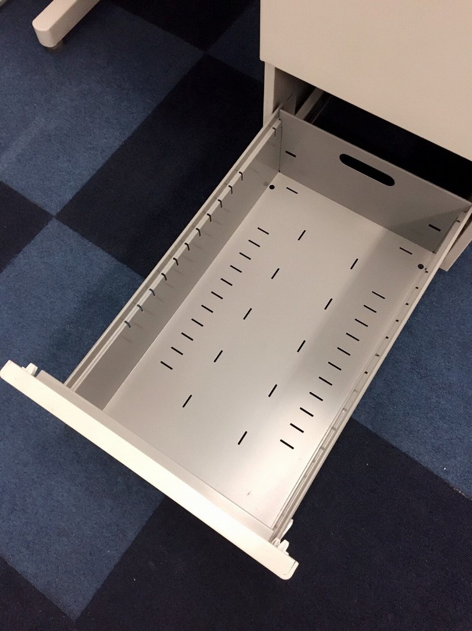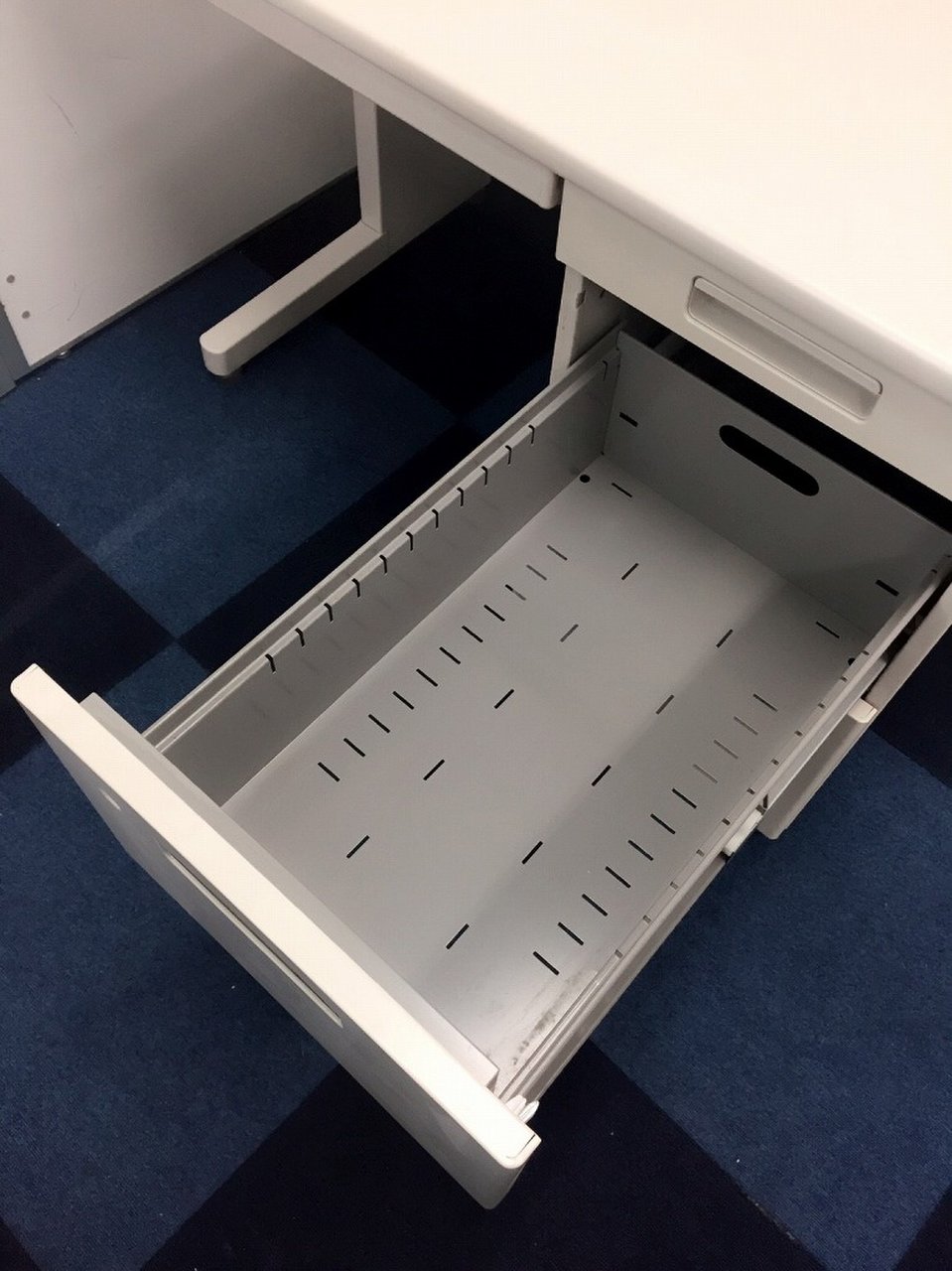 広々とした倉庫スペースに豊富な在庫がございます。オフィス家具が中古で一式そろいます!
