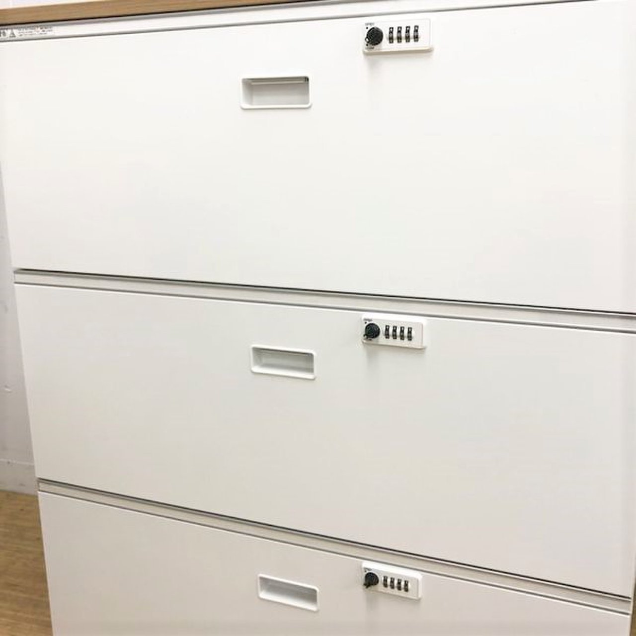 イトーキ製のシンラインシリーズのダイヤル式キー3段ラテラル書庫の入荷です!!