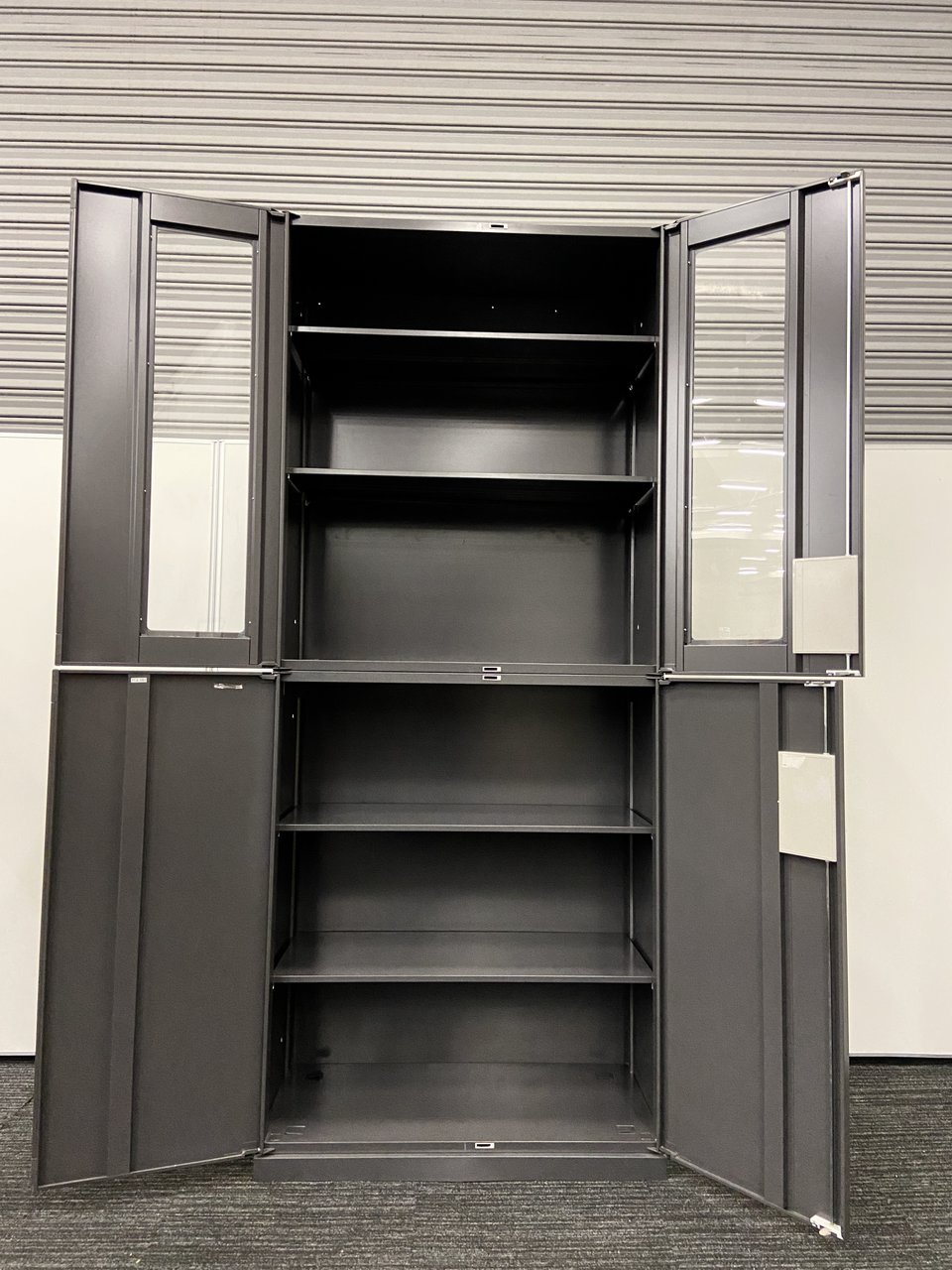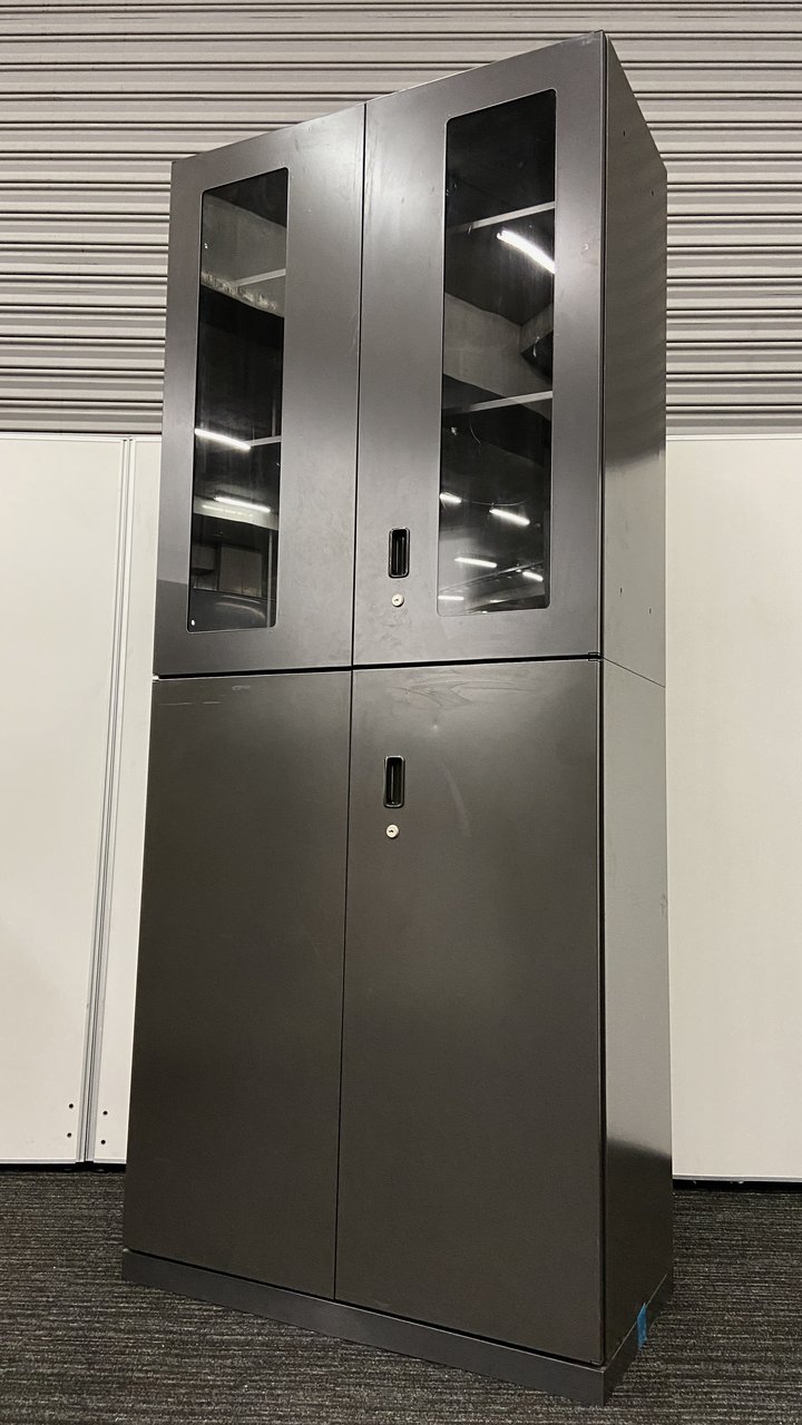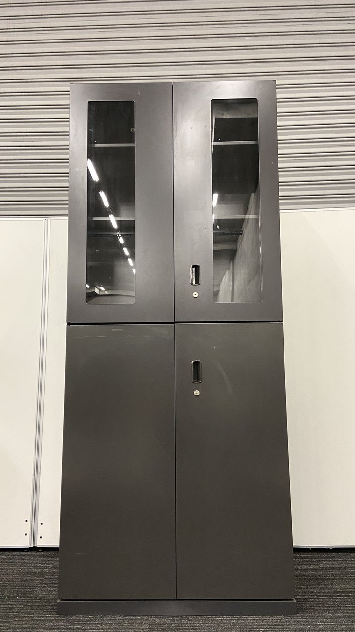 上置ガラス両開き下置両開き書庫 色ブラック- 在庫数