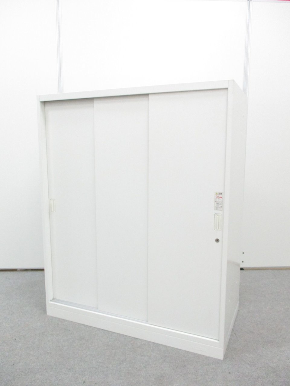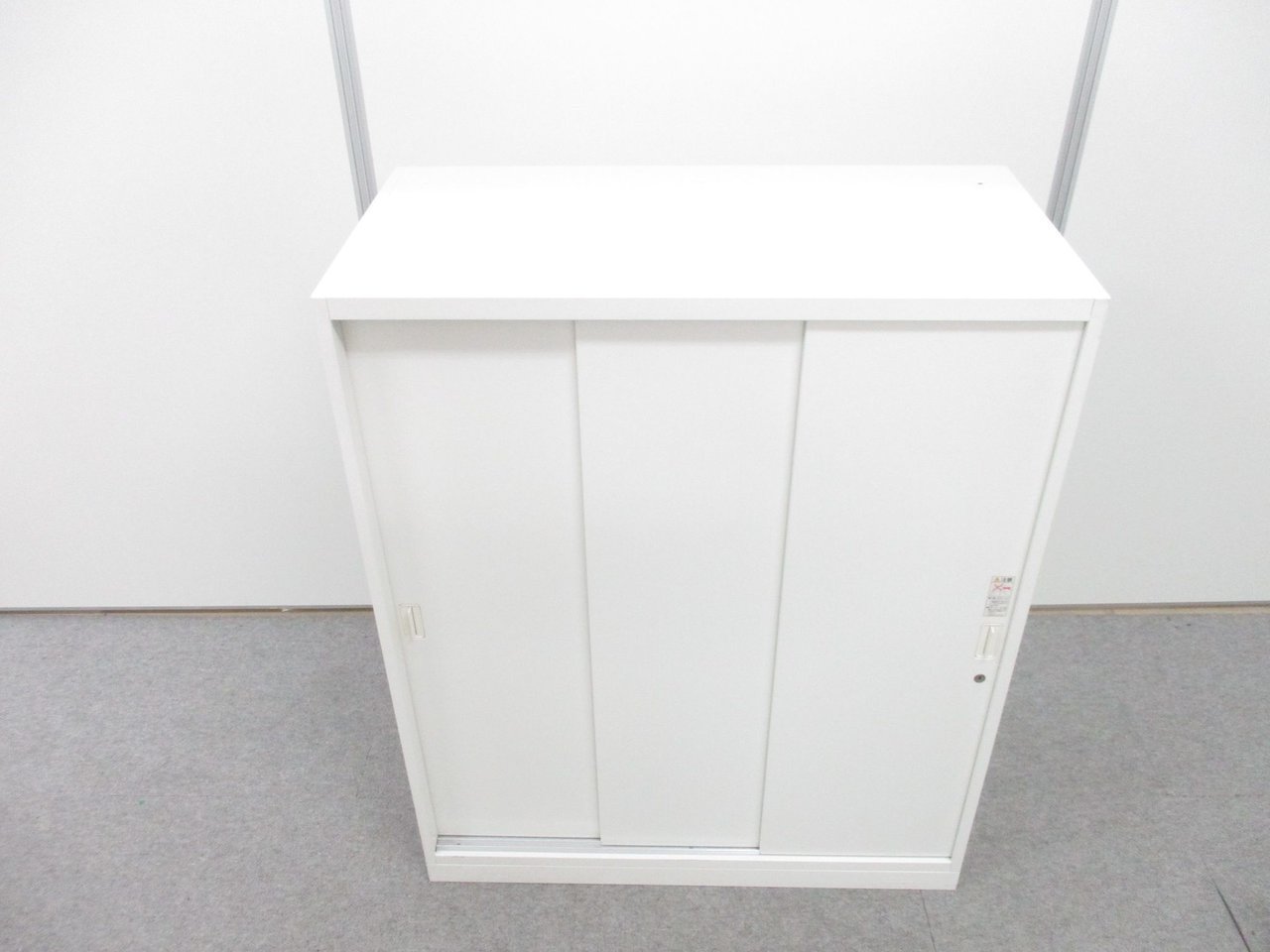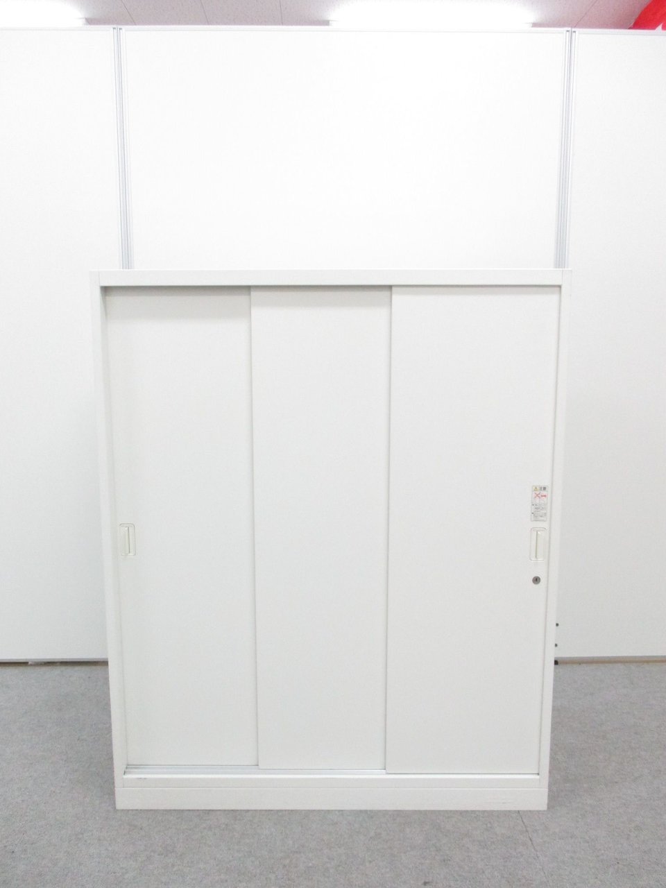 オカムラ製 人気レクトラインシリーズ ホワイト シリンダー W800xD450XH1050 3枚引戸 ※ベースなし 3枚引き違い書庫!!