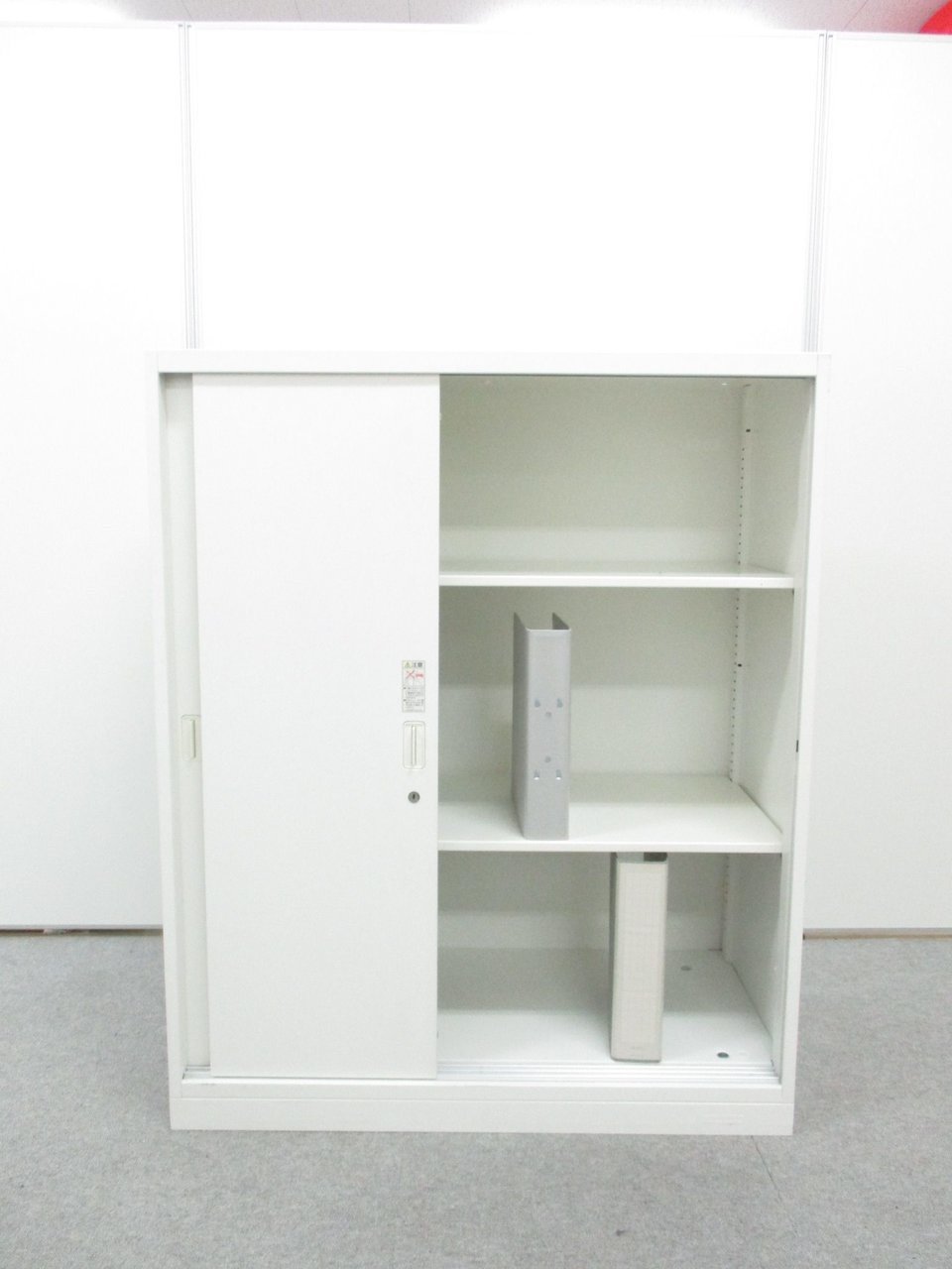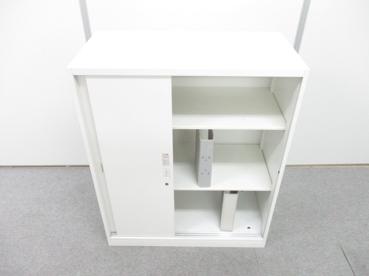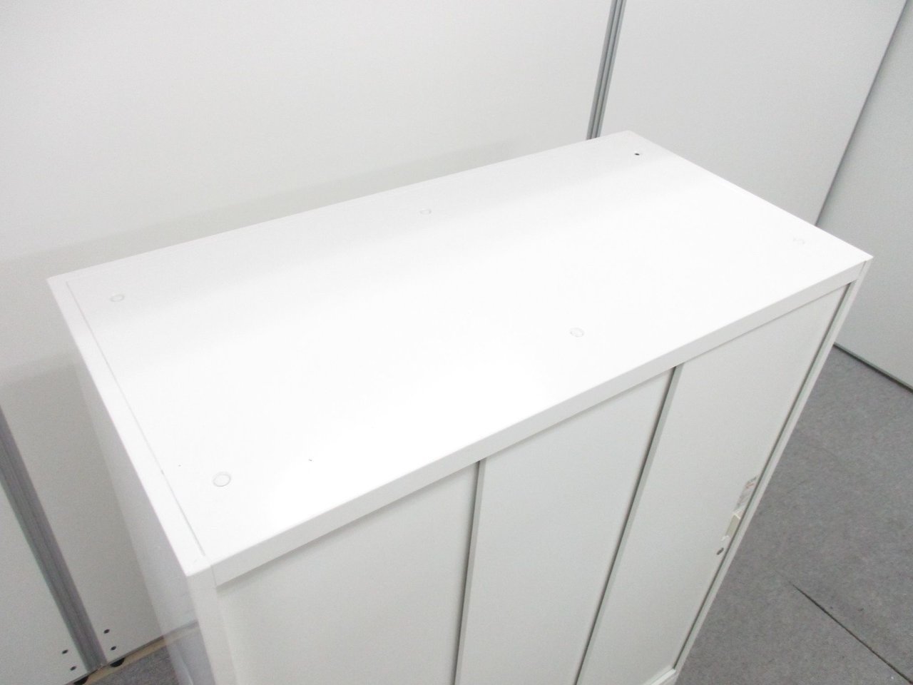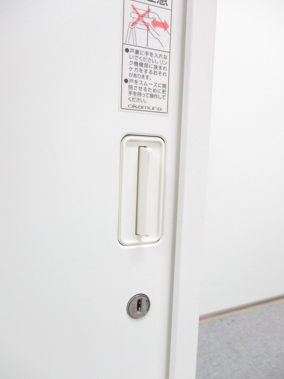2枚引き戸書庫 オカムラ レクトライン 鍵付き シリンダー錠 ホワイト 天板無し スライド式の扉のため導線を邪魔しません