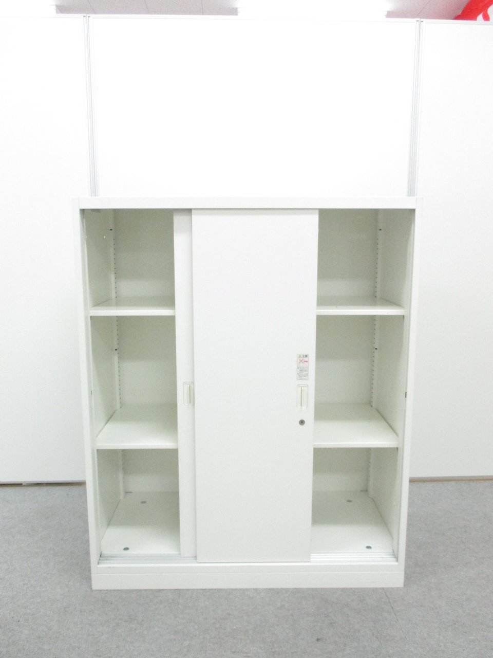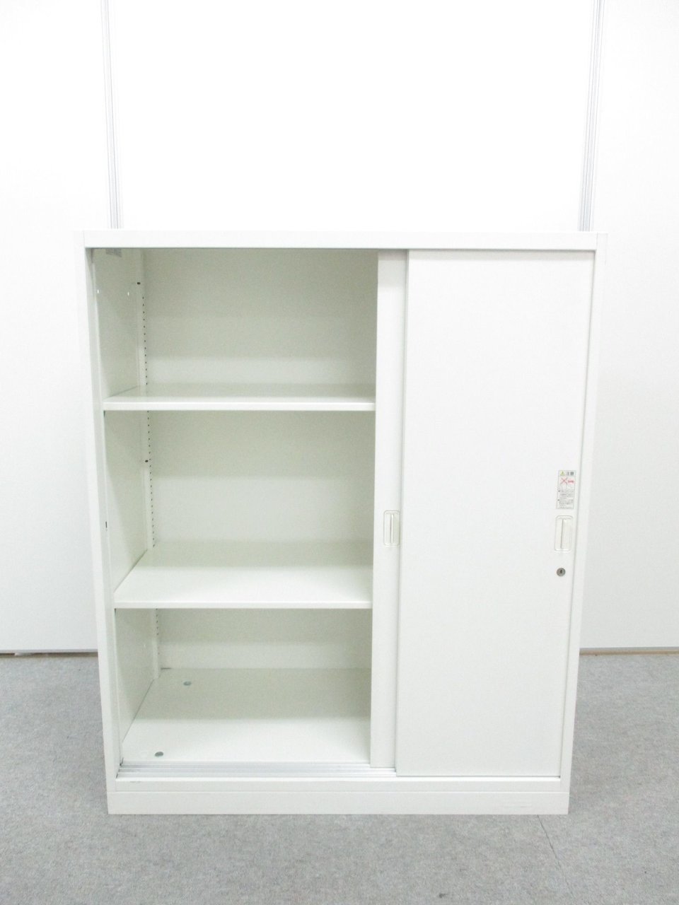 スライド式の扉のため導線を邪魔しません!使い勝手抜群の2枚引き違い書庫が入荷! ■オカムラ/レクトライン/ホワイト 2枚引き戸