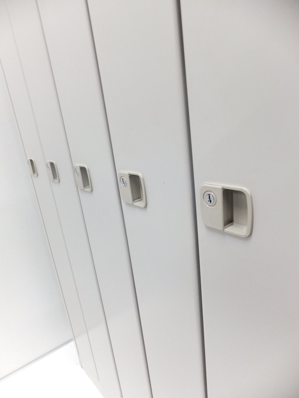 縦長の5人用ロッカーなので1つ1つの幅が狭くなっております!