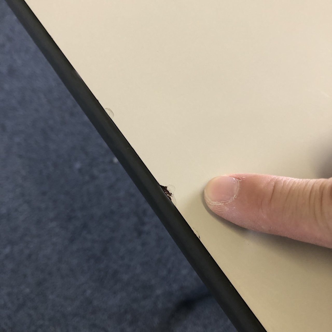 - 壊れている天板歪み、アジャスター無し、キャスター使用不可のようにそのテーブルの本来の効用を果たすための機能に不具合がある。