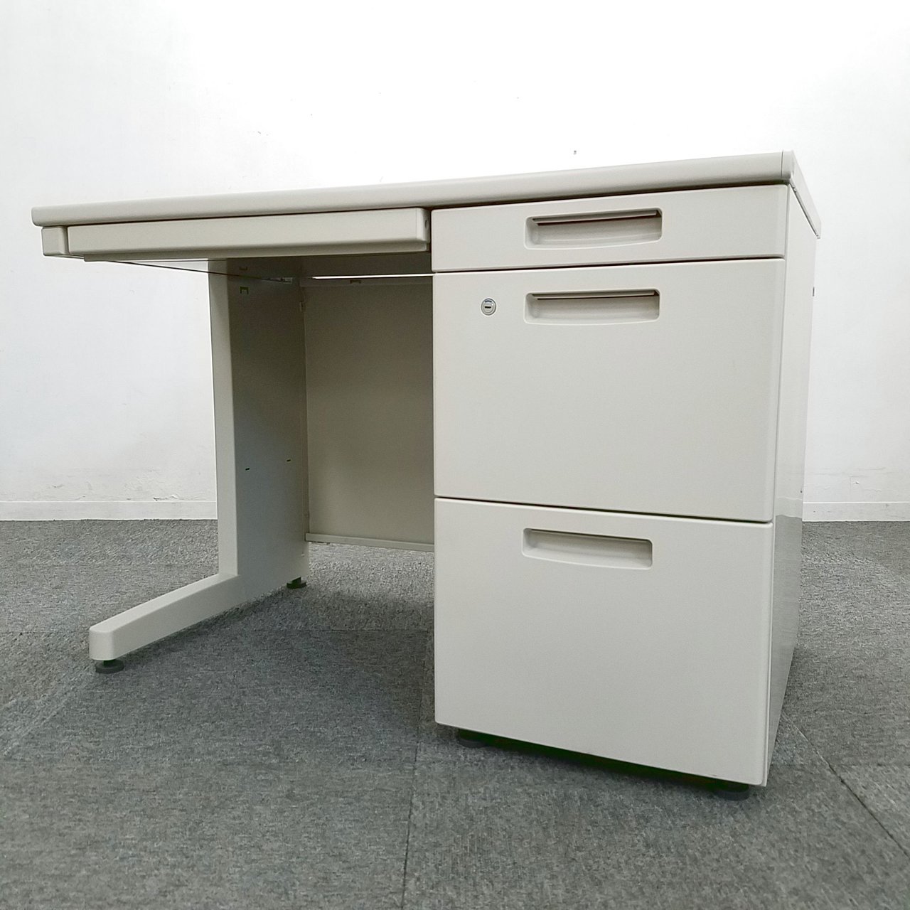 【スタンダードなデザインで高品質・コンパクトなサイズ感!収納力を備えたキャビネット一体型の片袖スチールデスク 】■コクヨ(KOKUYO)製 新BSシリーズ 片袖デスク W1000×D700mm ■シリンダー錠 ■ナチュラルグレー