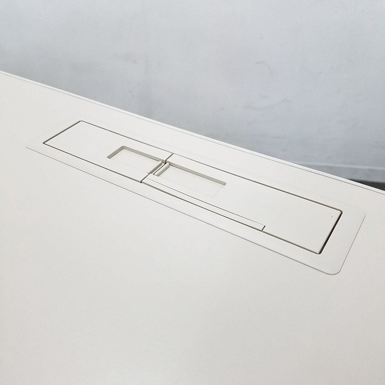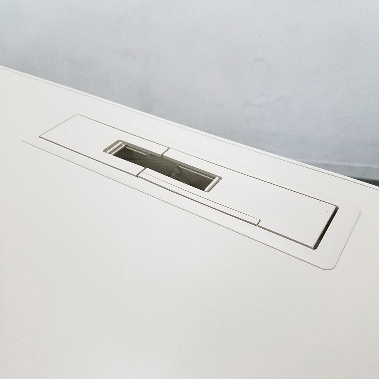 明るいアイボリーよりのニューグレー色で非常に人気のデスクになります。