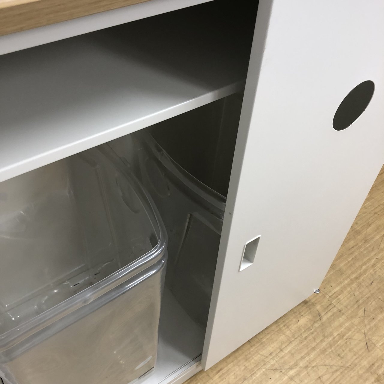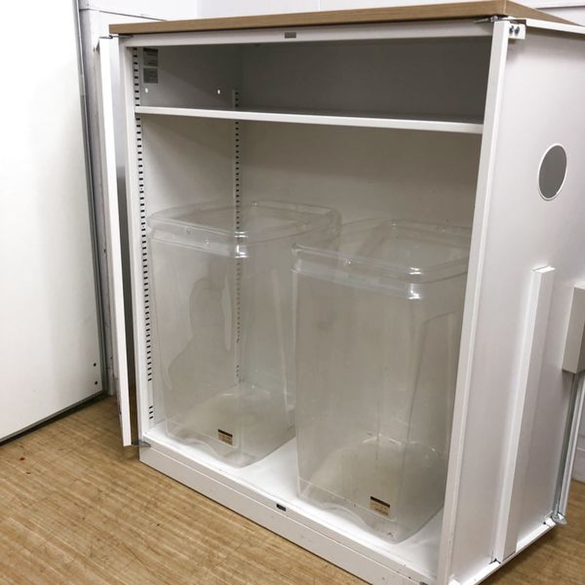 - 一部不具合ありそ引出の開閉不可、施錠不可、棚板無しといったの書庫の本来の効用を果たすための機能以外の一部が使用不可(例、扉、引出の開閉がしづらいなどがある。 )