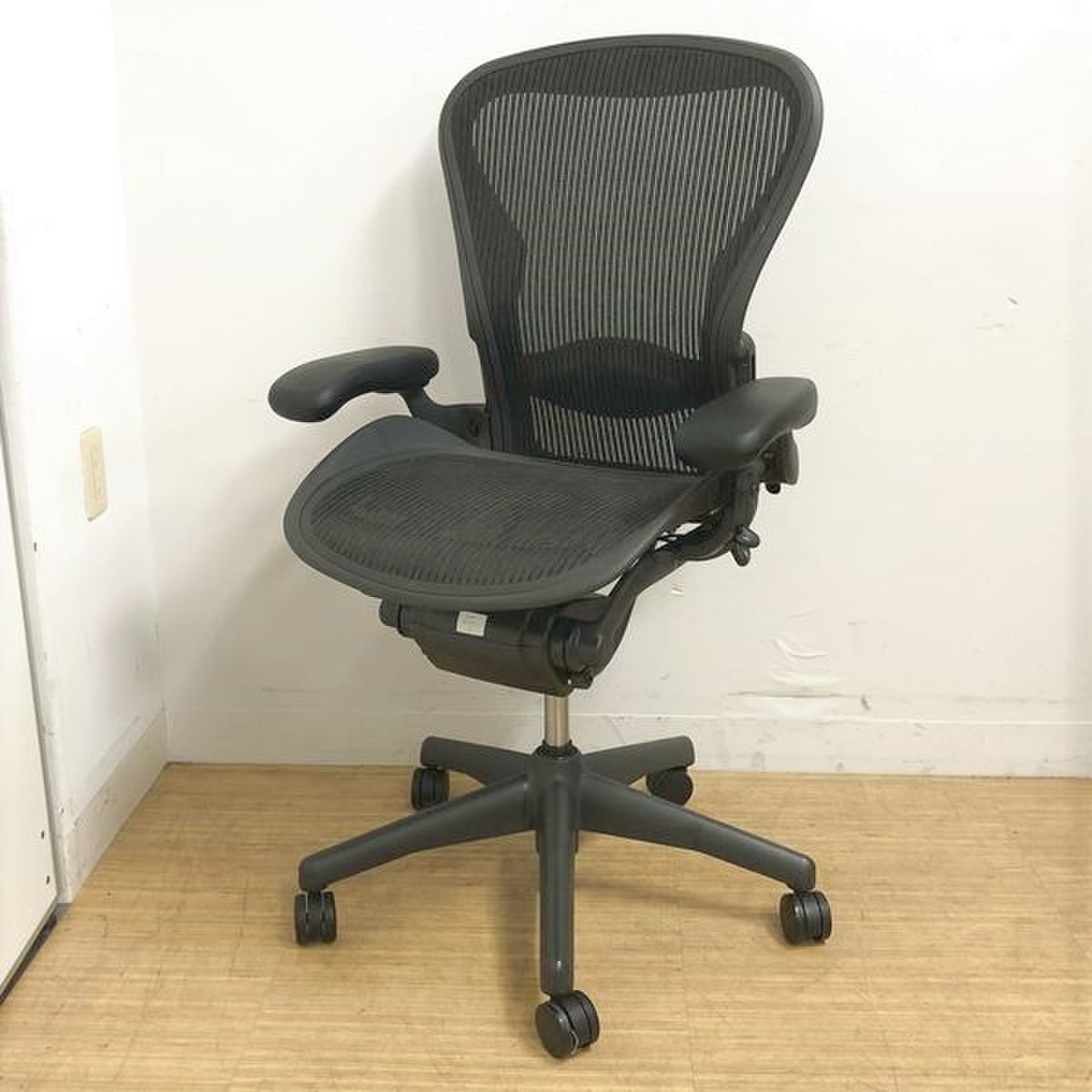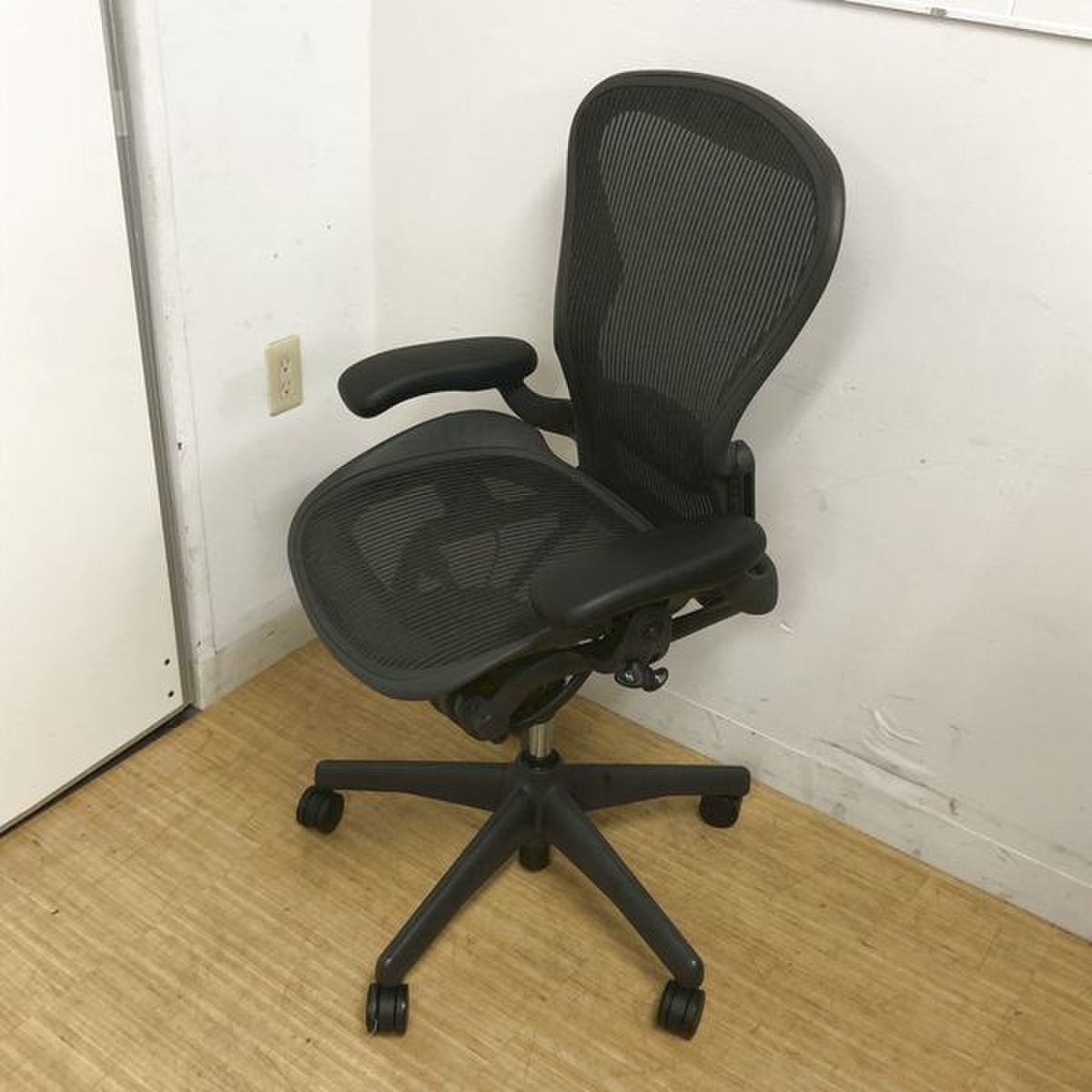 【★状態イマイチのためお安く!】■ハーマンミラー製 アーロンチェア Bサイズ 固定肘 ※キズあり・ランバーサポート無・昇降ガス圧弱めのためお安く!【訳あり特価品】