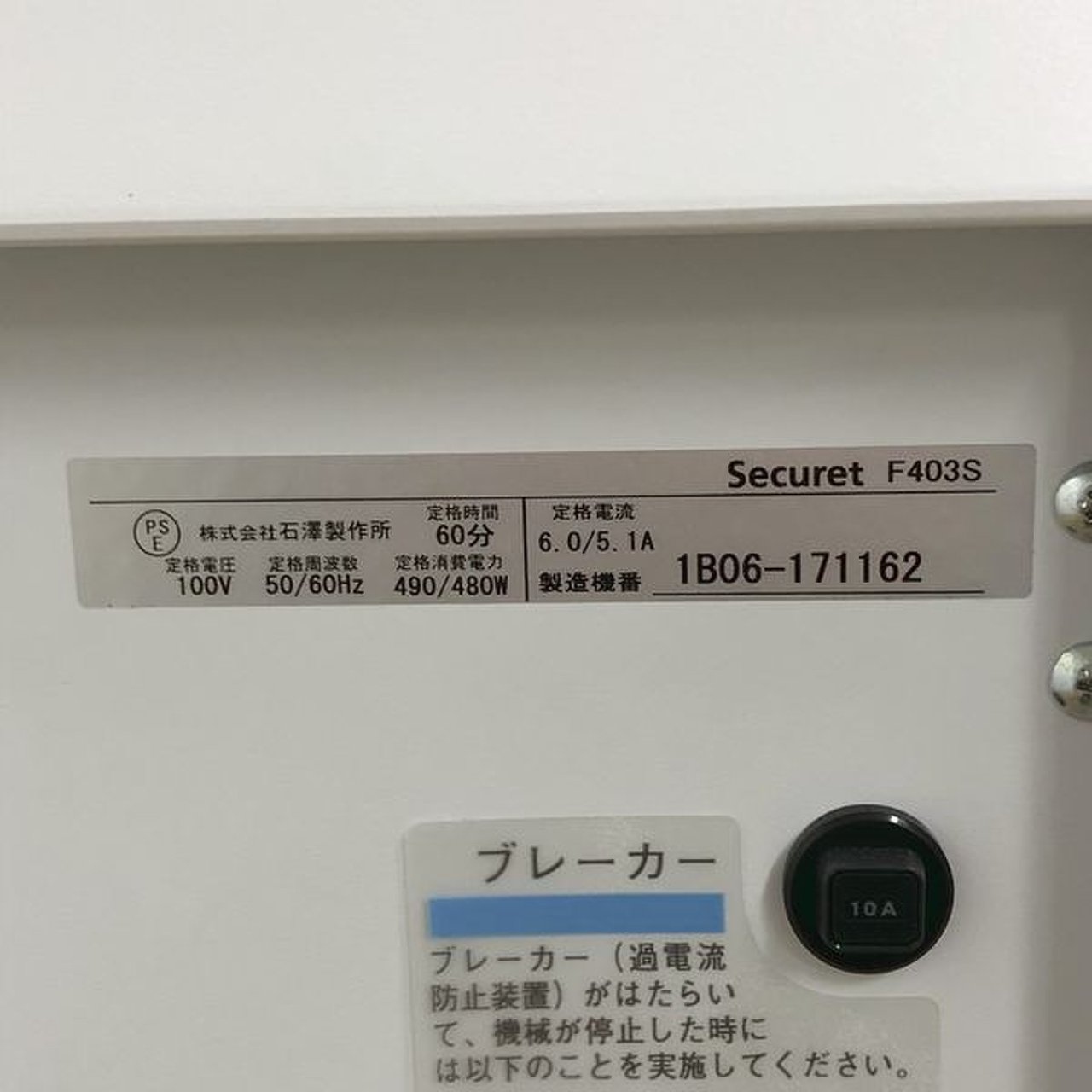 【中古】 セキュレット F402S 石澤製作所 シュレッダー 329123