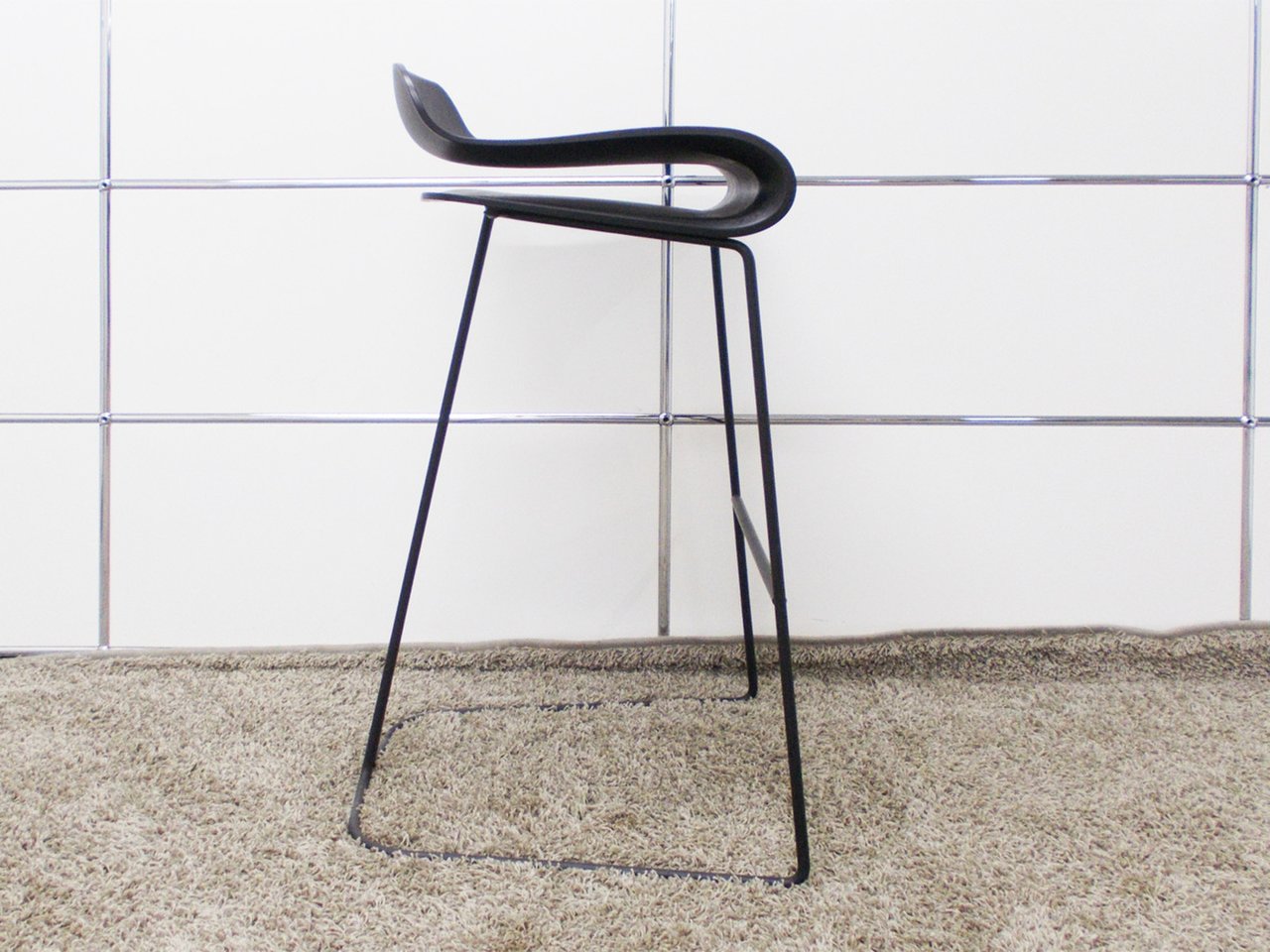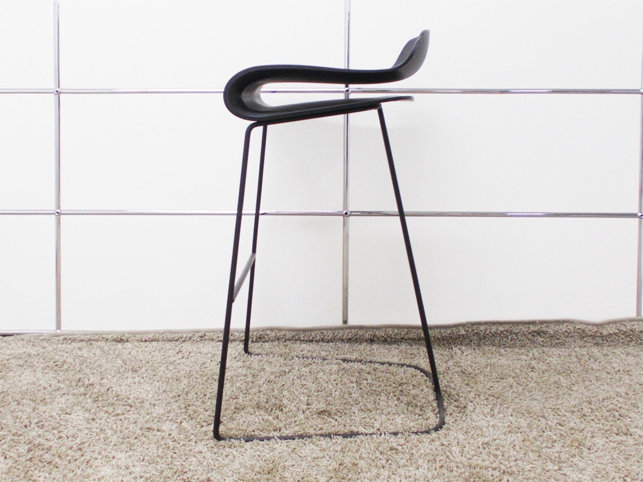 折りたたんだような曲線が美しいカウンタースツールです。後ろの隙間部分には雑誌などを置いてもオシャレかと思います。電気分野で絶縁体などに使われる、特殊なプラスチックを使用。シンプルで洗練されたデザインで、しなりや熱に強いしっかりとした作りになっています。
