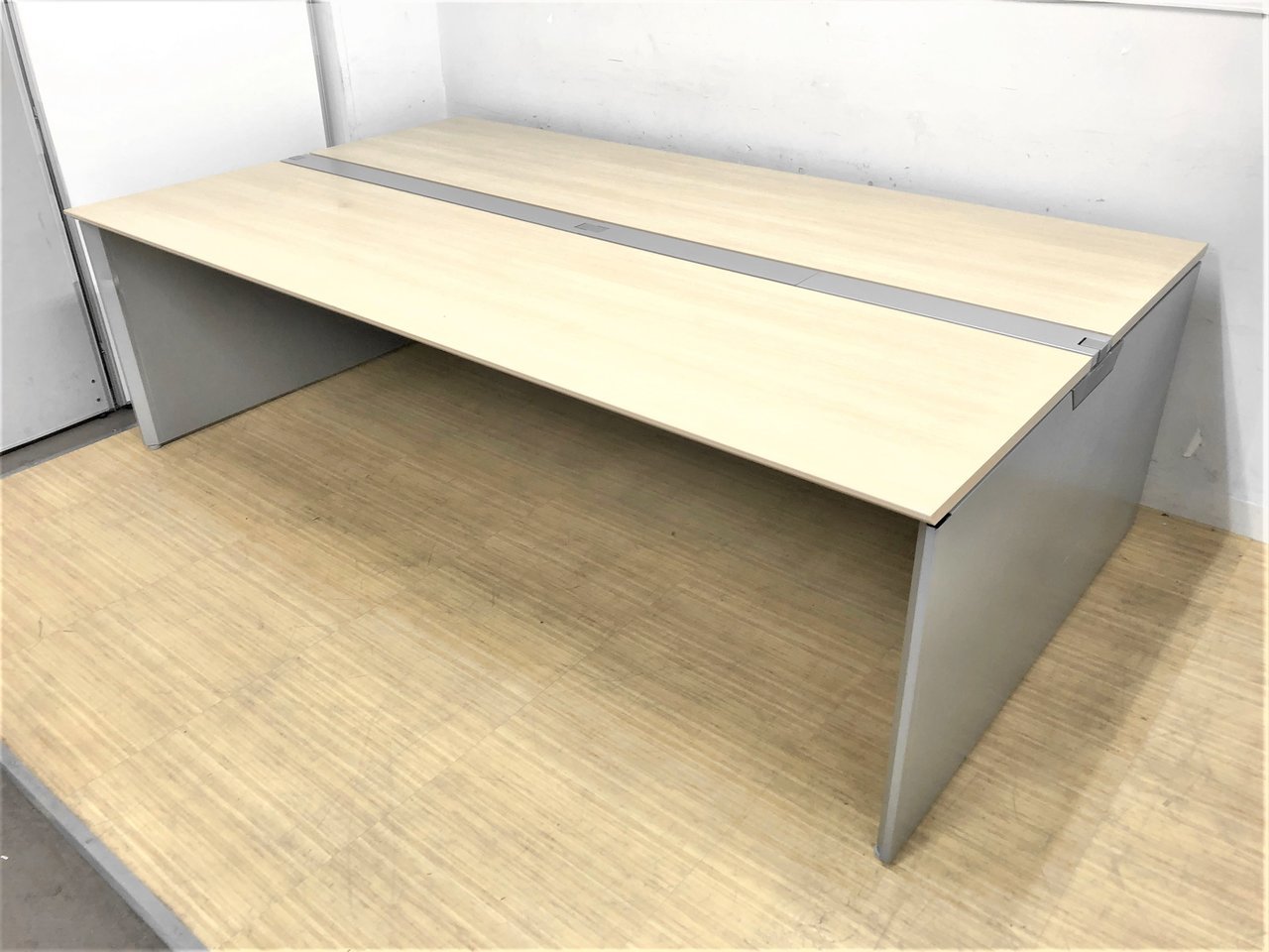 W4000(W2000+W2000)×D1400 天板:ネオウッドライト 脚・ビーム:シルバー 配線カバー:開閉式シルバー- 名古屋千種店