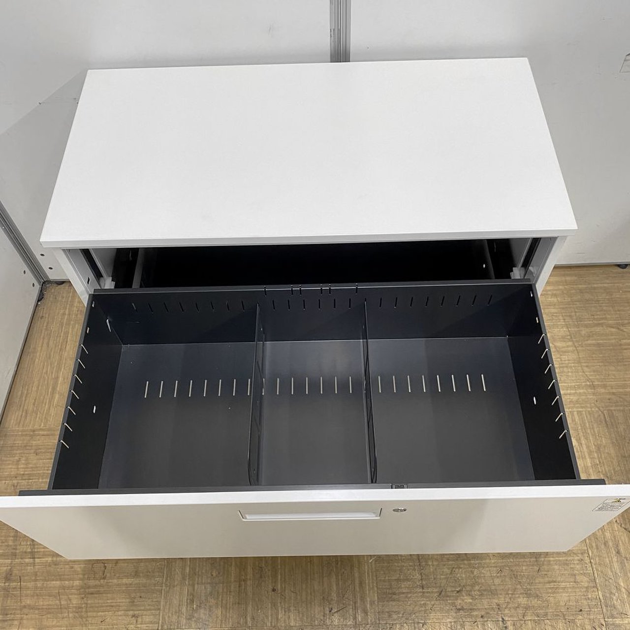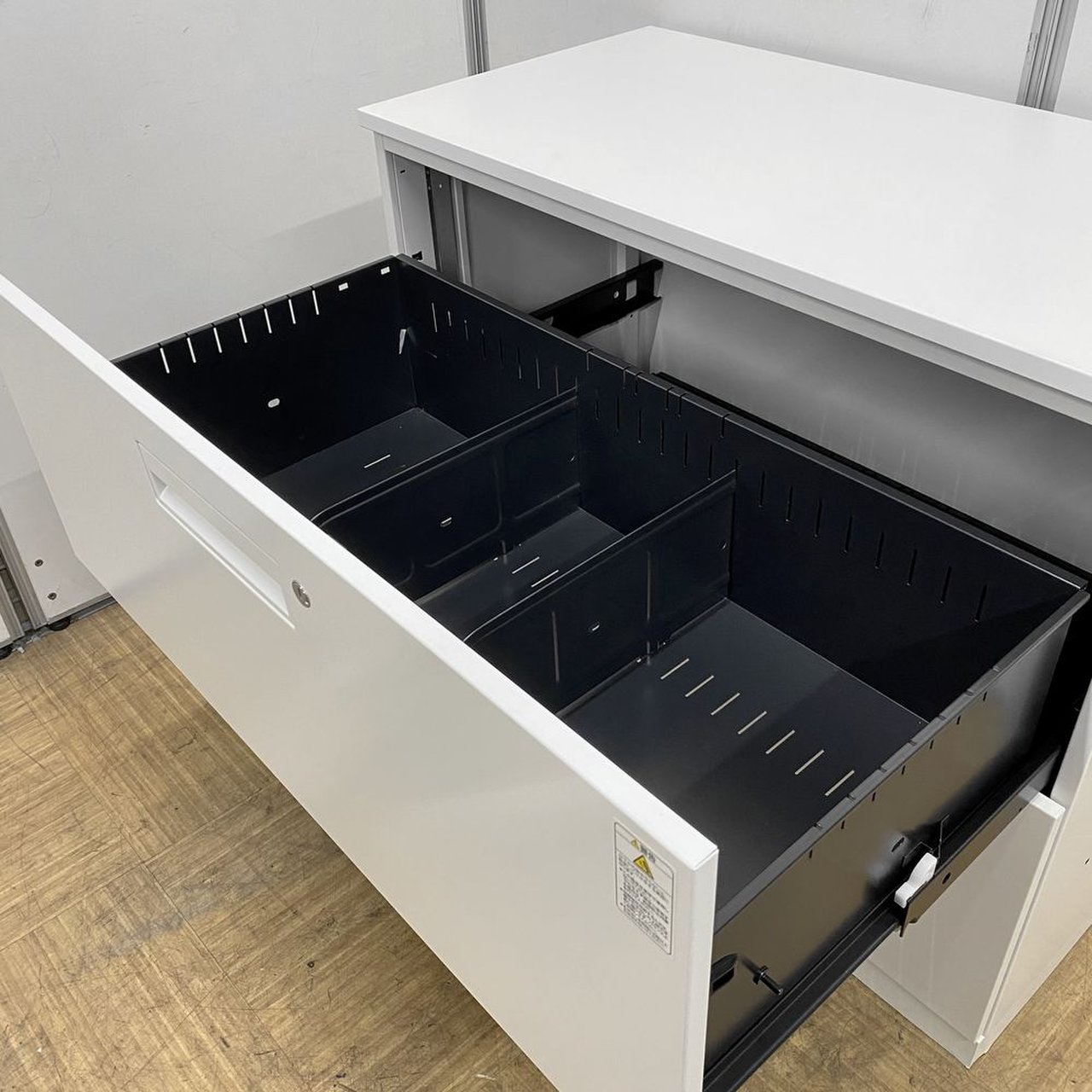 - 一部不具合ありそ引出の開閉不可、施錠不可、棚板無しといったの書庫の本来の効用を果たすための機能以外の一部が使用不可(例、扉、引出の開閉がしづらいなどがある。 )