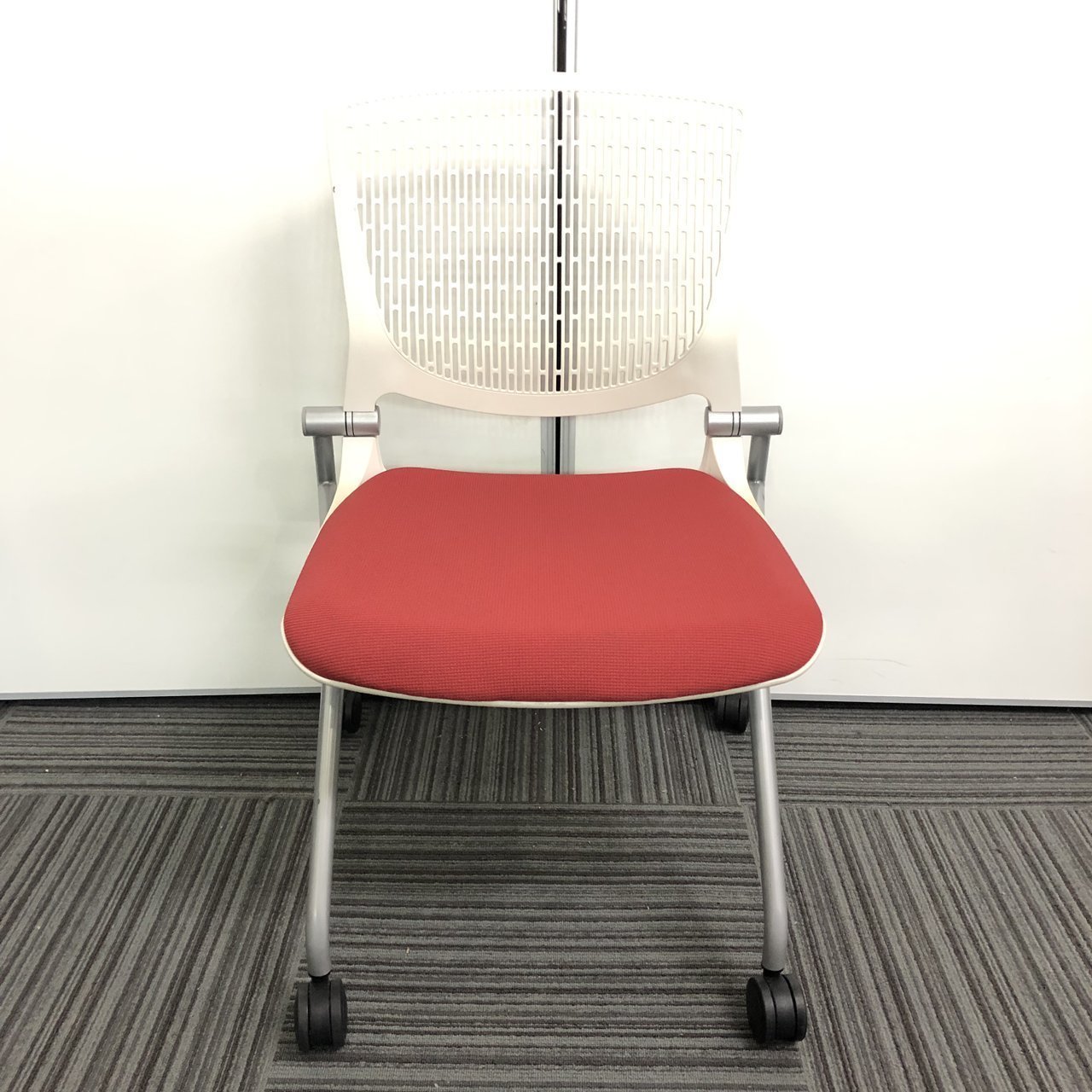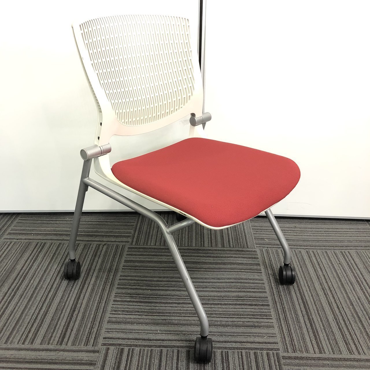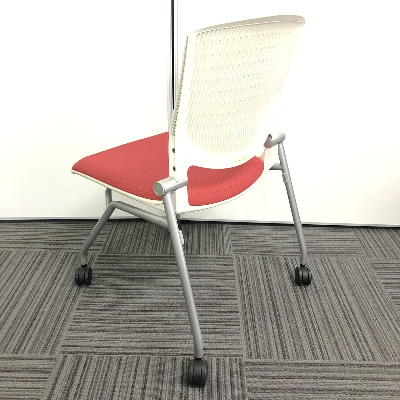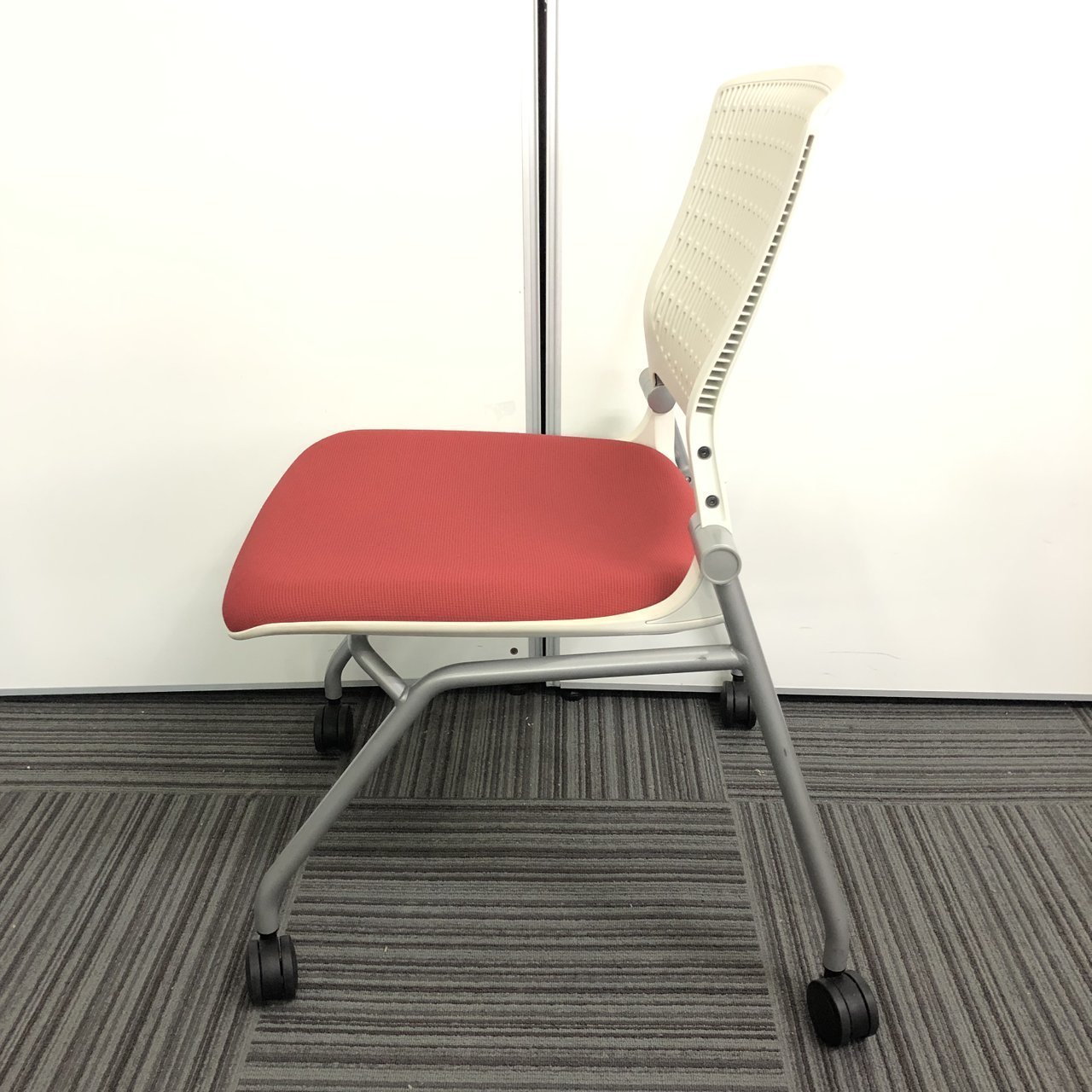 【在庫入替セール】【8脚限定】【しなやかにワーカーを受け止める洗練されたデザイン!使わない時は平行に重ねて収納可能!】■オカムラ(okamura)製 グラータ (Grata) 肘無し ミーティングチェア ネスティングチェア ■背パッド付き ■キャスター付 ■レッド【K10】