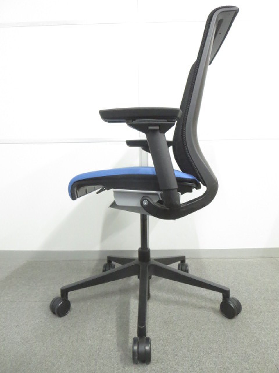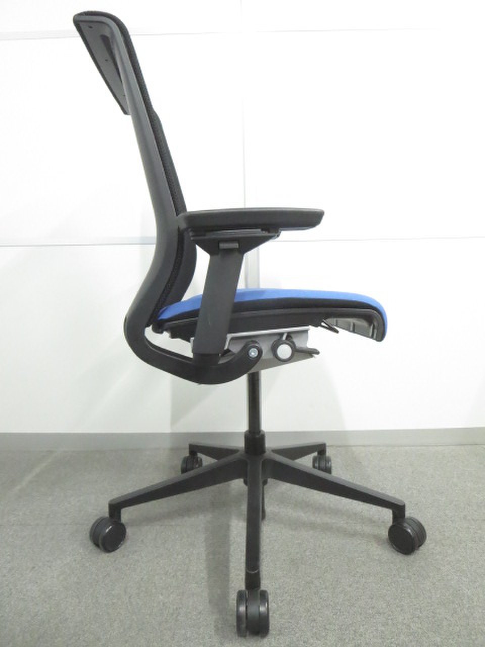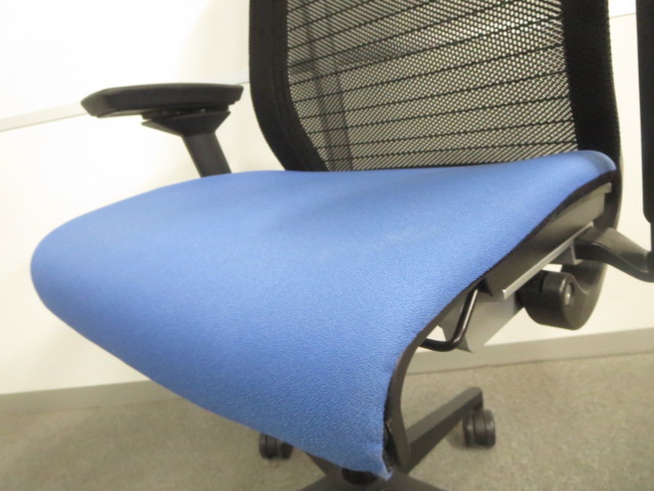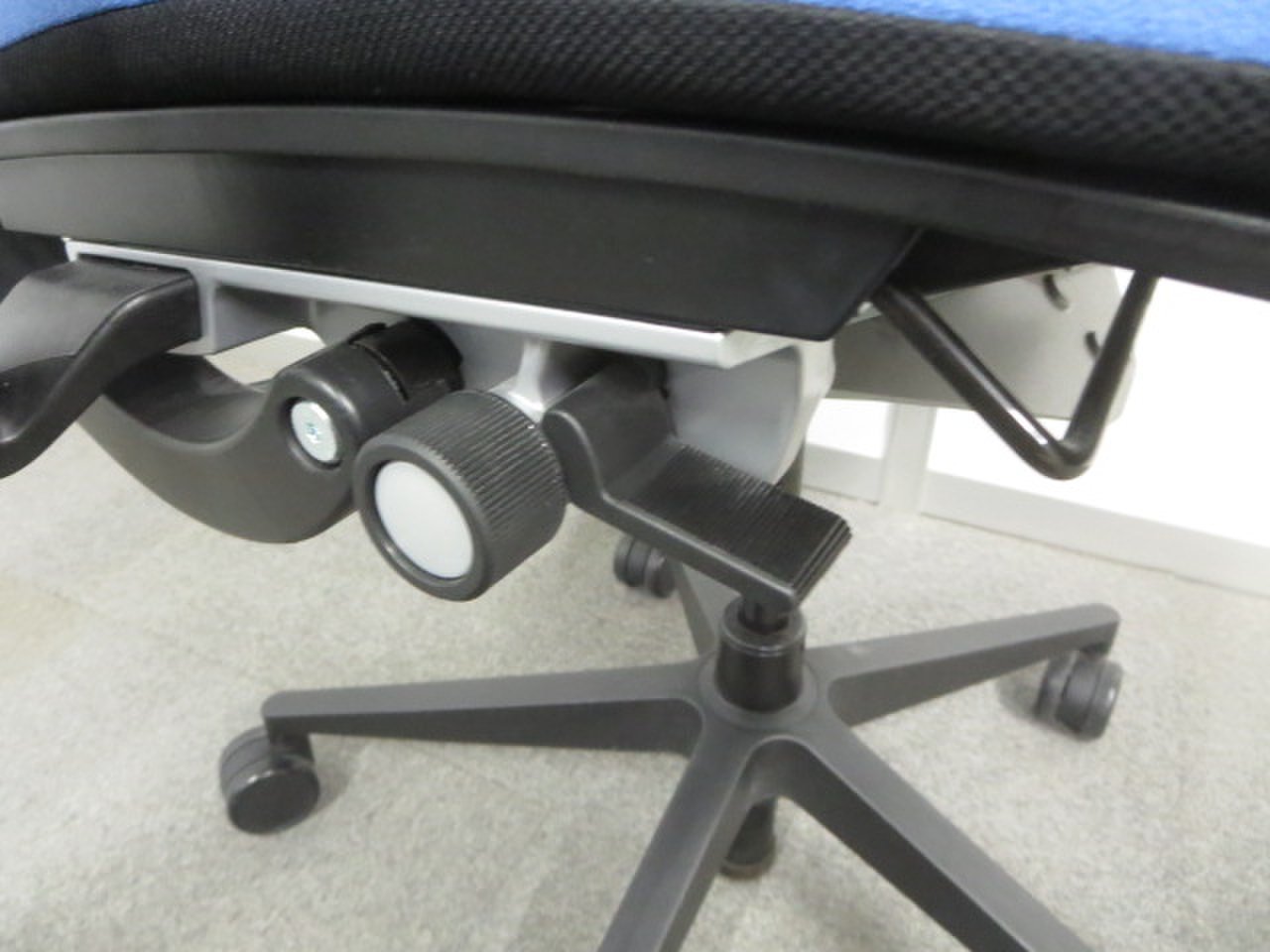 快適な座り心地に不可欠な調節機能である、上下昇降、座面の奥行き調整、リクライニングなどを備えており、操作もわかりやすく好評です。 特に、座面の奥行きは、座面下の左右に通った細いバーで調整でき、座ったままで軽やかに滑るように調整が可能です。 価格面では、新品では高めですが、中古は流通も多く、定価の3割前後の価格で高級チェアの座り心地を手に入れることができます!