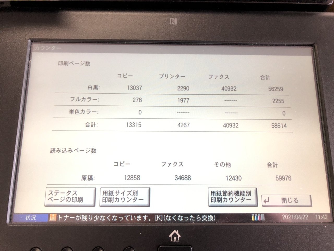 ※出荷時にメンテナンスを行う都合上、納品時にはカウンター枚数は微増します。