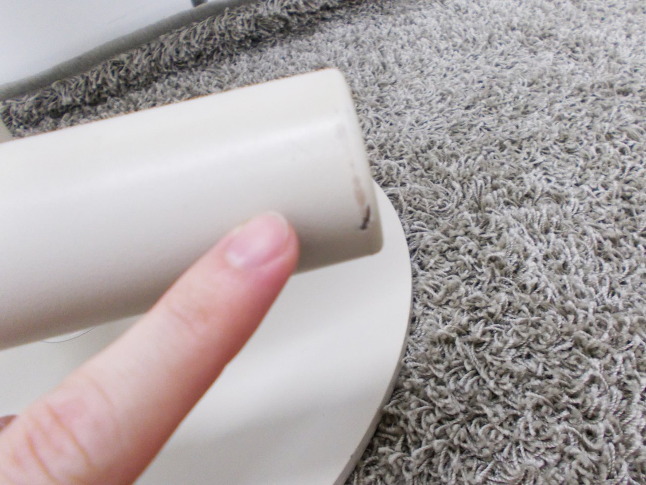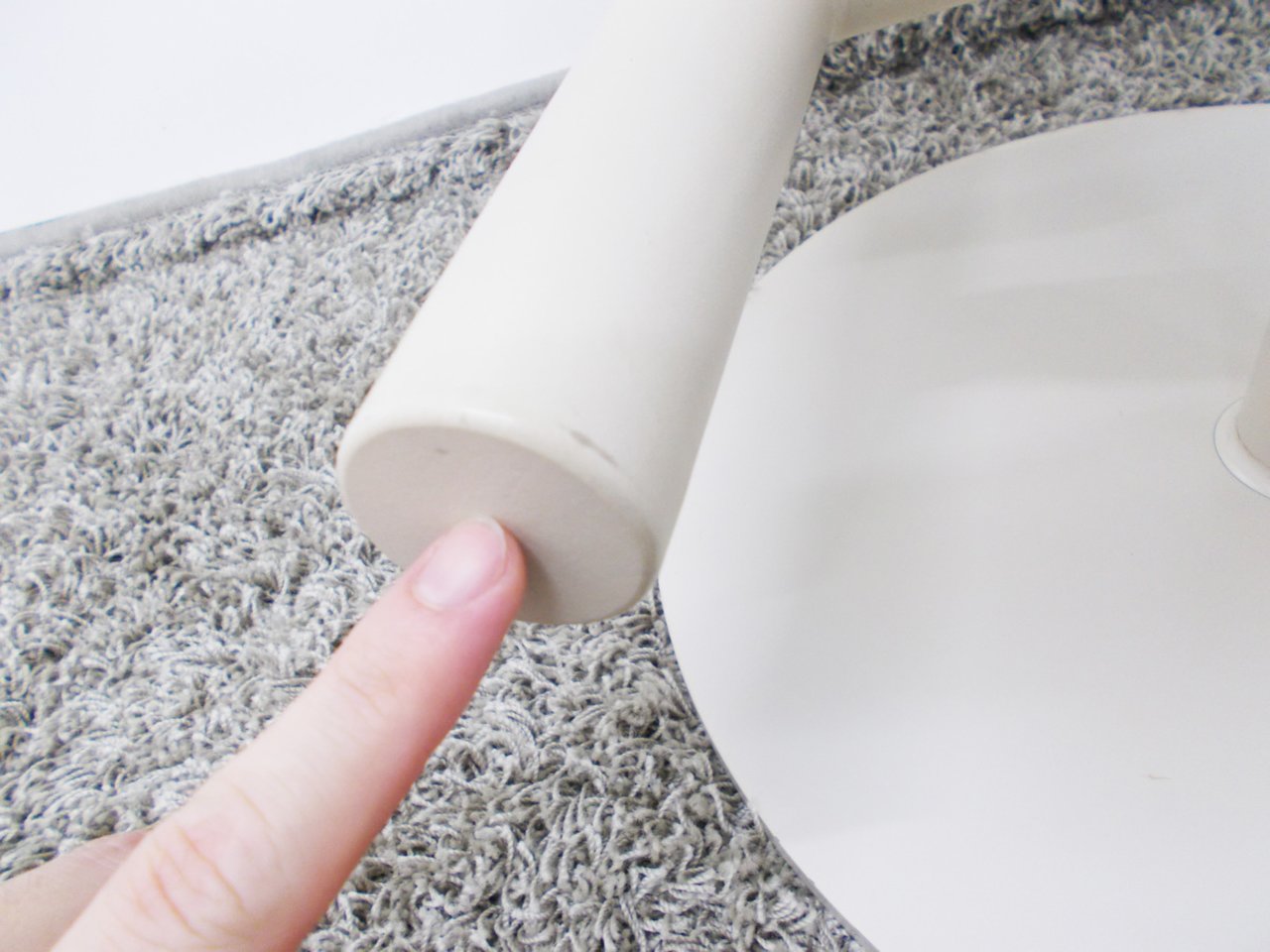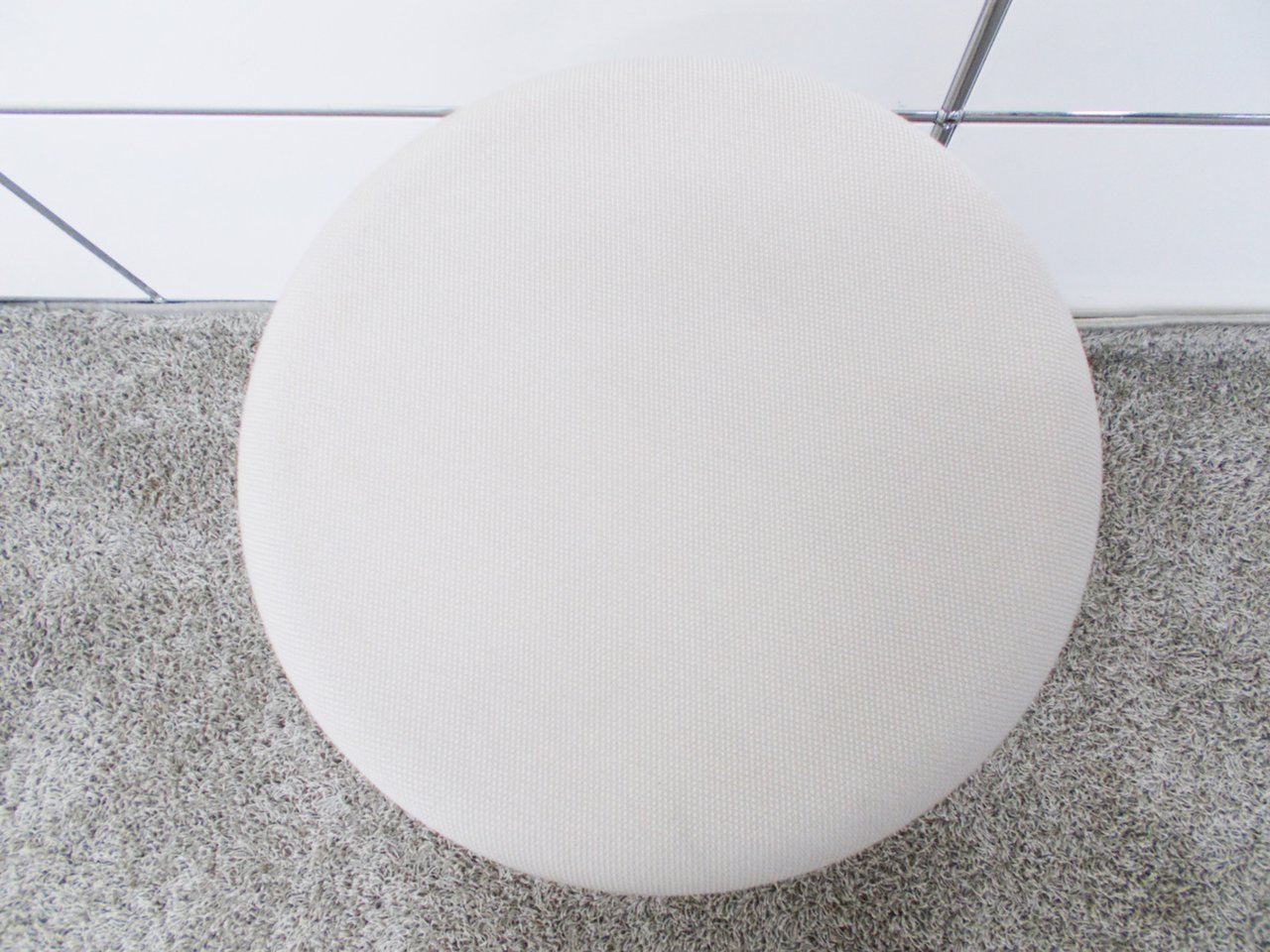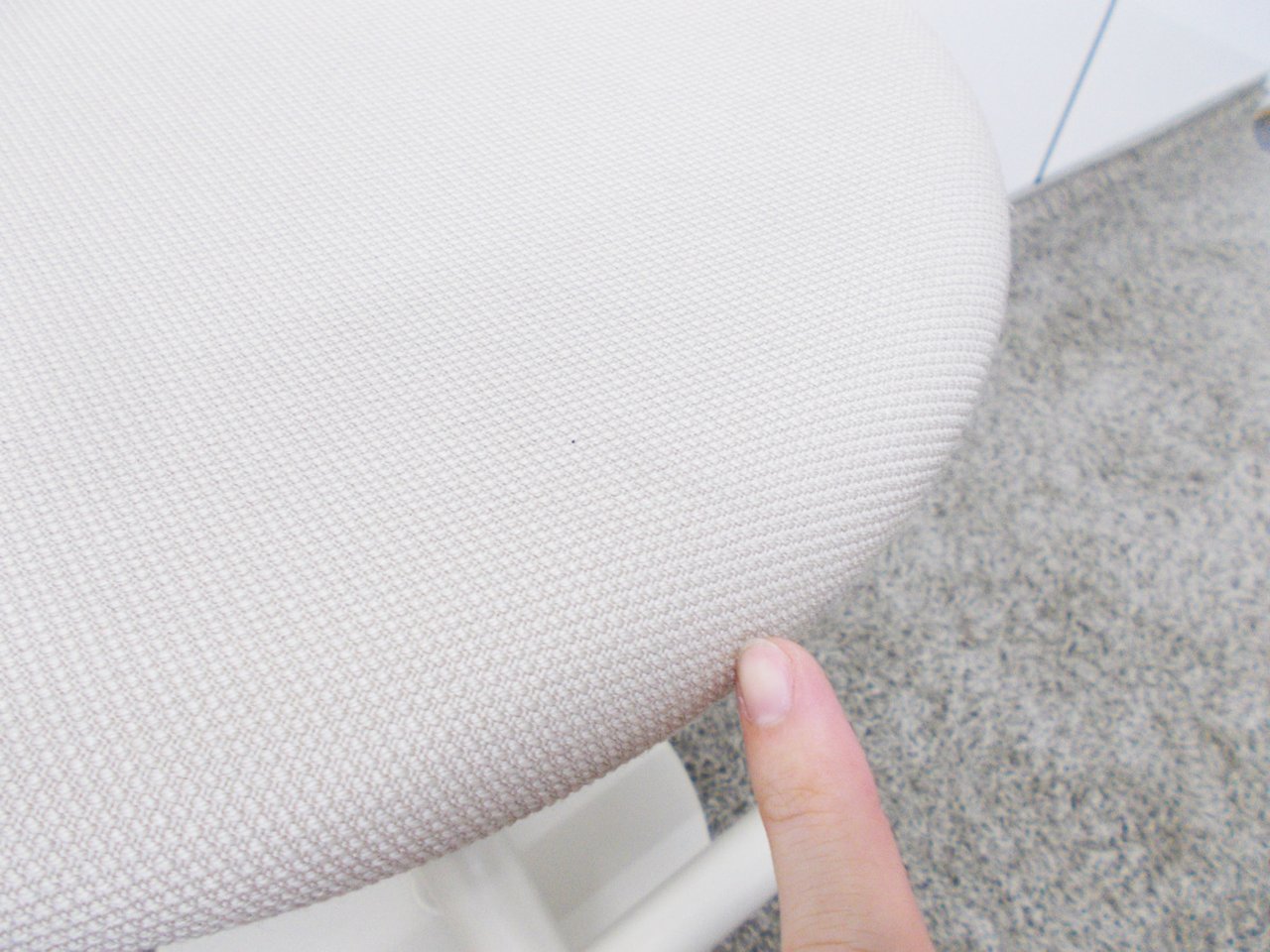 座面部分のみ本体と同色のファブリックカバーがついており、 適度に柔らかく座り心地もなかなか良く、 座面裏のボタンを押すと高さが昇降する仕組みになっています。