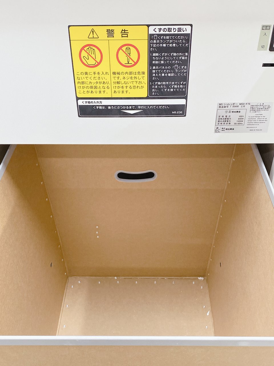 | そのほか機能 | ・細断可能物:紙類、CD/DVD、FD、MO、クリップ(28ミリ以内)、ホッチキス(NO.10以下)、カード類 |