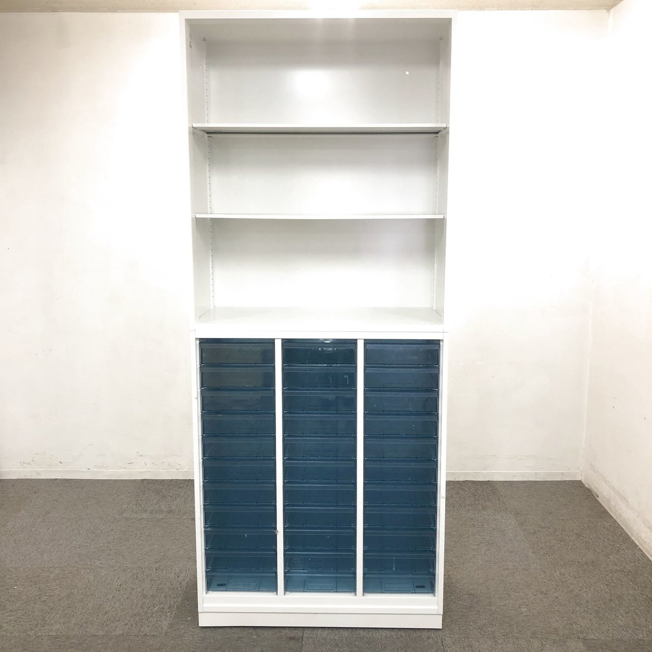 【1台限定】コクヨ製の上下書庫入荷!中古 オフィス クリスタルトレイ キャビネット 棚 書庫 ホワイト BWUH-K59SAW BWU-PA259SAWN- 大阪・堺店