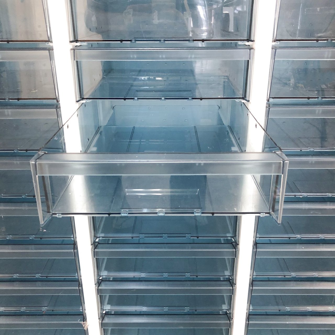 - 両開きタイプは扉が180度開き、通路の邪魔になりません。ラテラルタイプは引出しが限界まで出せ、出し入れ楽々。