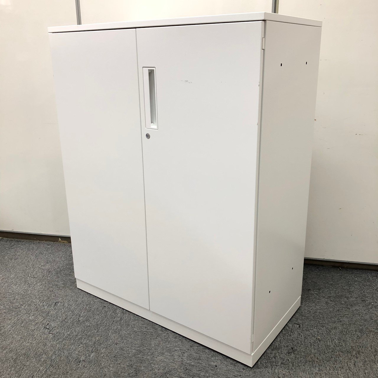 【収納物がひとめで分かる両開き戸タイプ!】■コクヨ(KOKUYO)製 エディア(EDIA)シリーズ 両開き書庫 ローキャビネット H1130㎜ ■天板・ベース付 ■ホワイト ■シリンダー錠