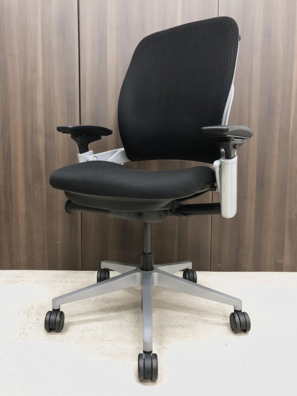 【限定1脚】ワークチェア アームレスト付 可動肘 ブラックフレーム オススメ(おすすめ) 大人気 ・Steel case/スチールケース ・Leap-v2/リープV2 ※横浜本店撮影画像※