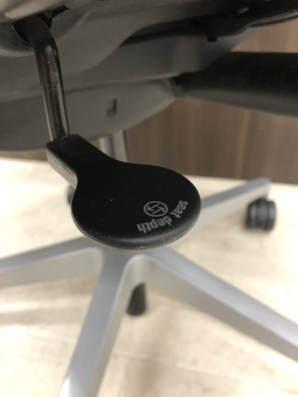 - 前後75㎜で調節可能。様々な体格にフィットします。座前縁部チルト機構も搭載で、前傾姿勢時の大腿部への負担も軽減します。