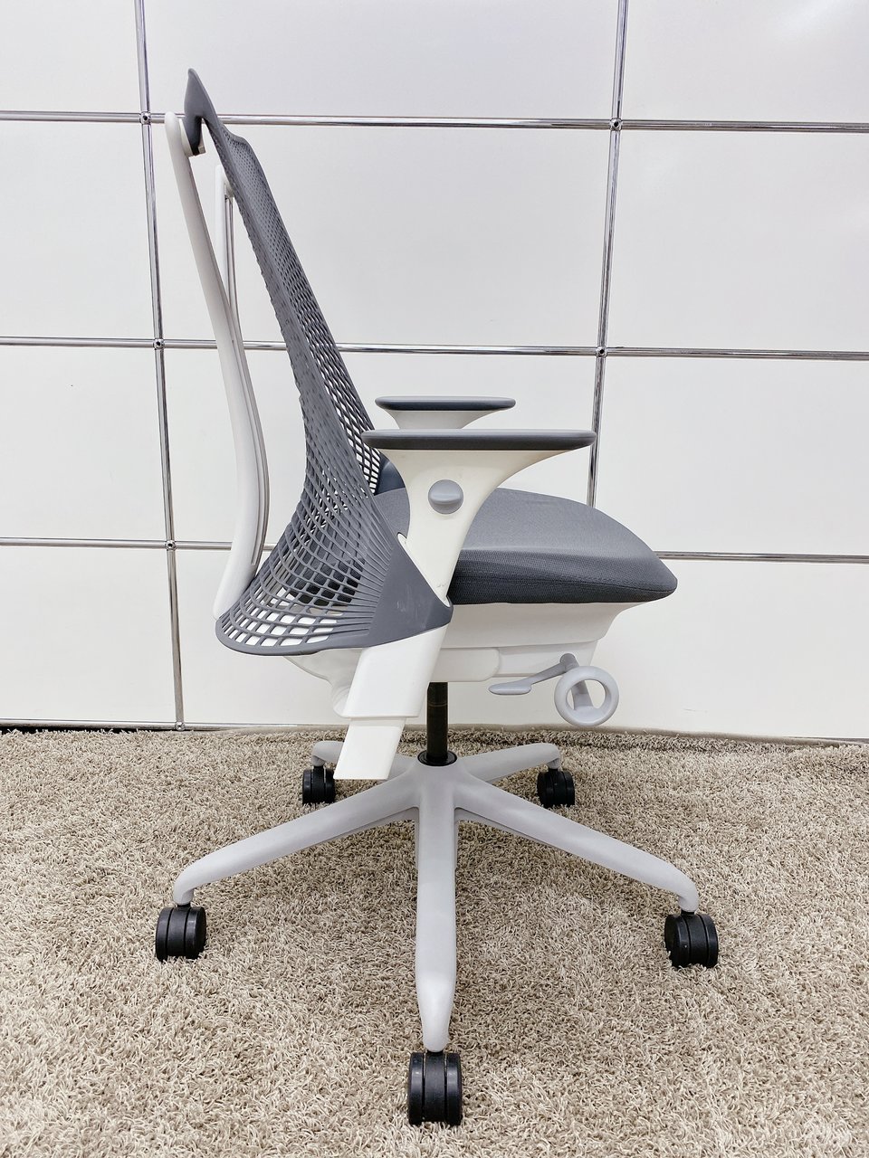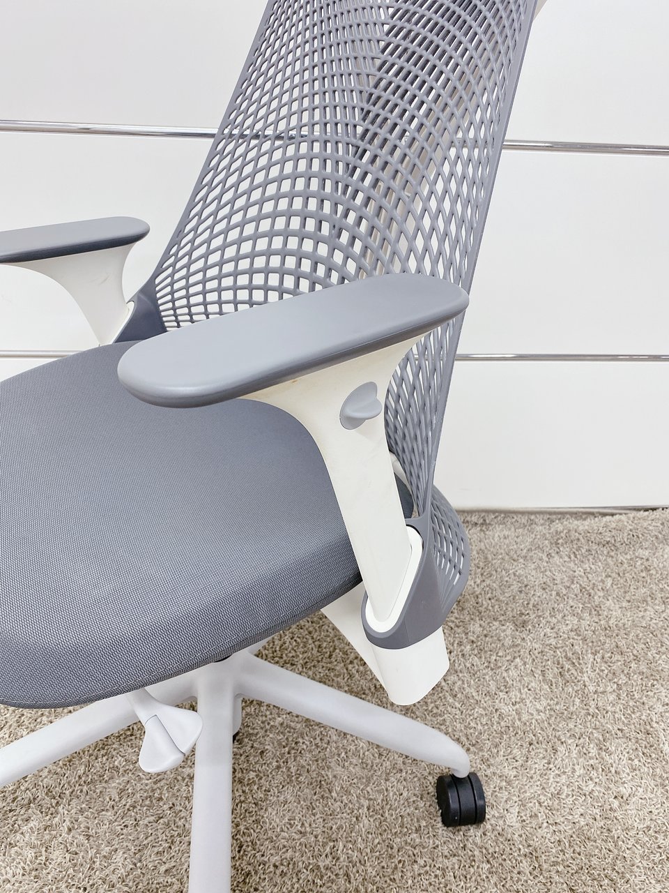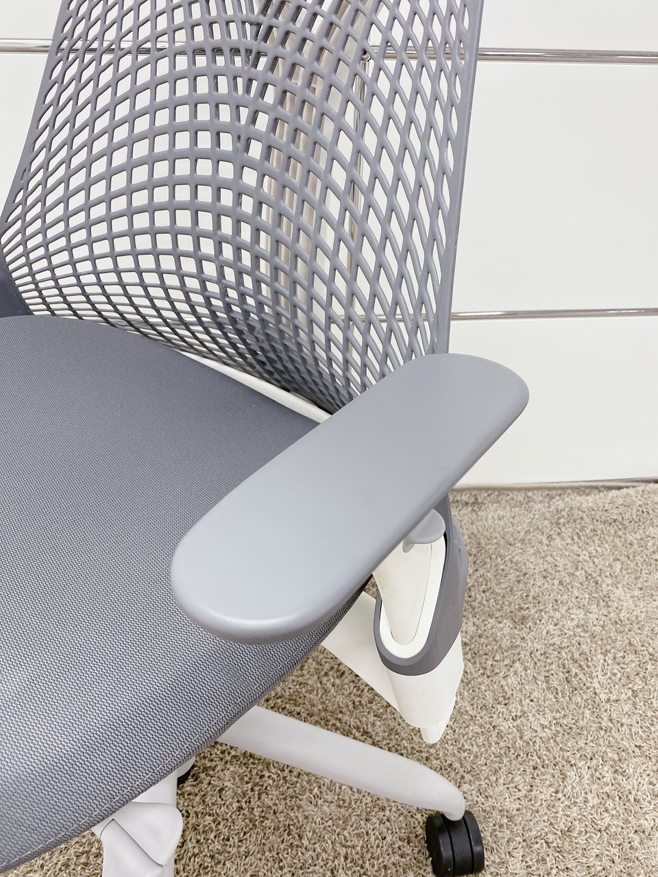【KS】【デザイン家具】個性的なデザインが特徴!!2018年製■ハーマンミラー■セイルチェア■グレー(可動肘)- 茨城南店