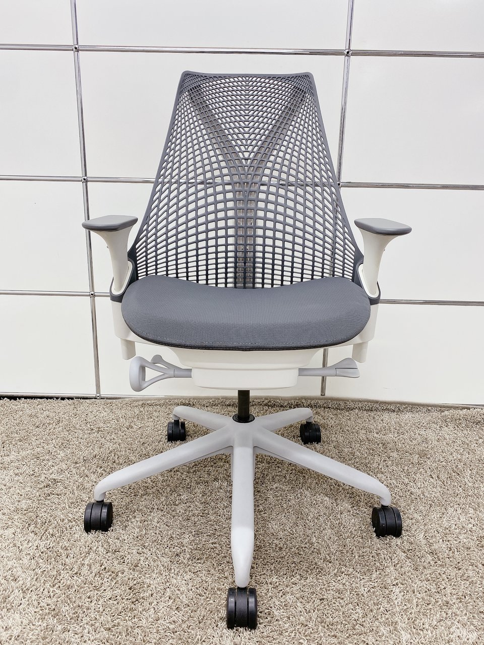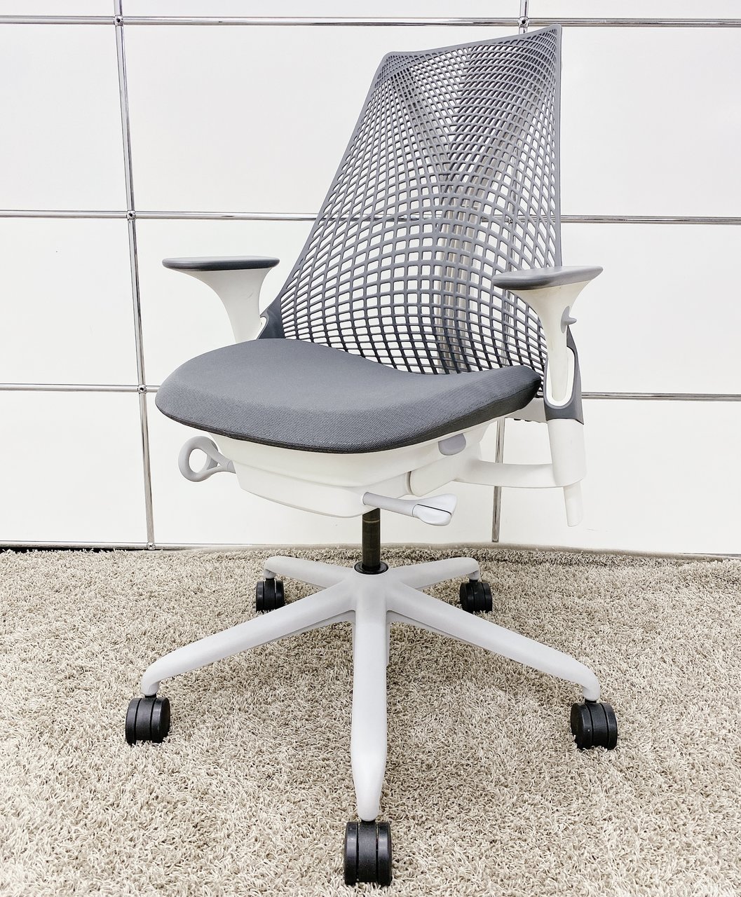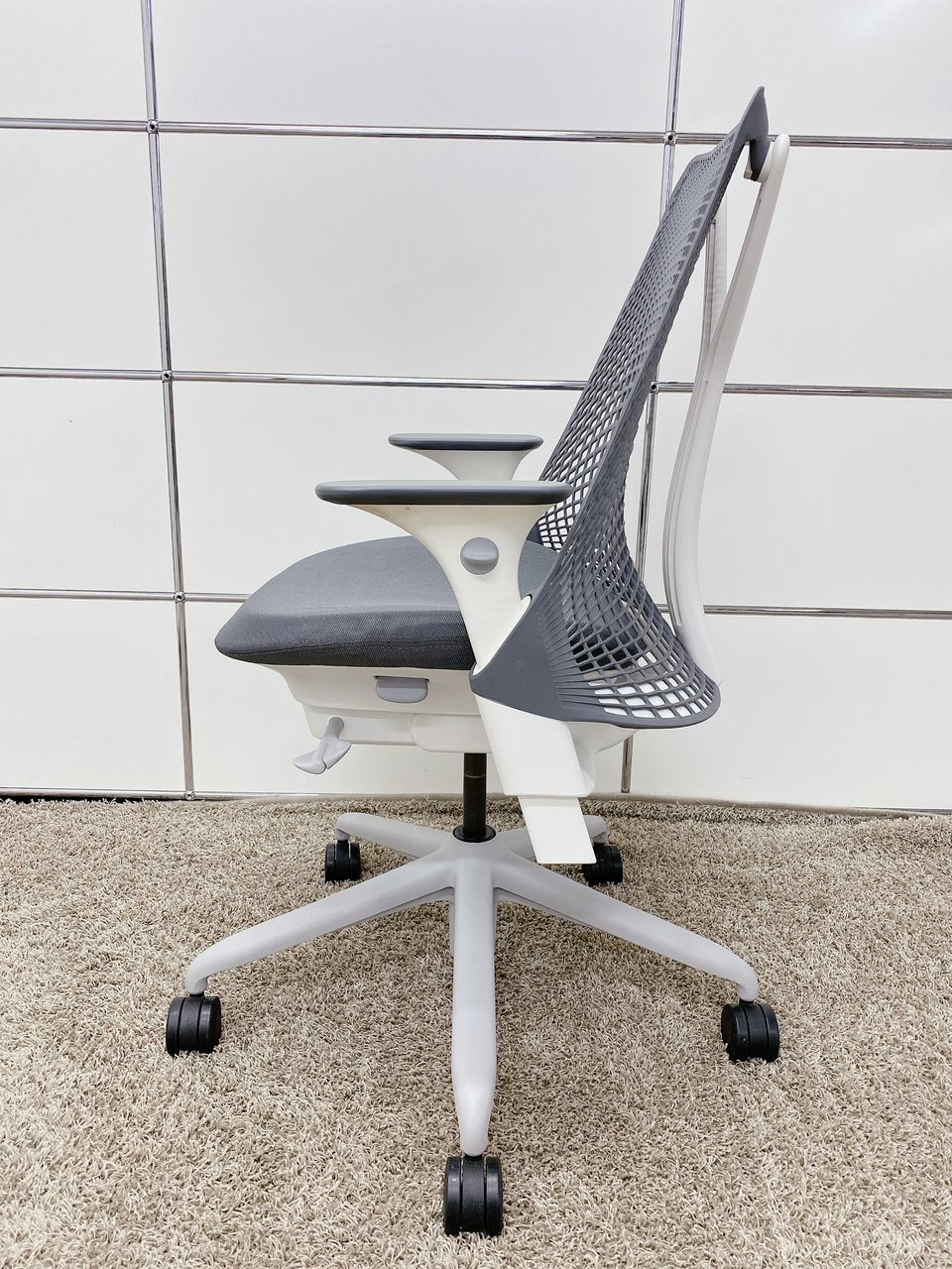 【KS】【デザイン家具】個性的なデザインが特徴!!2018年製■ハーマンミラー■セイルチェア■グレー(可動肘)- 茨城南店