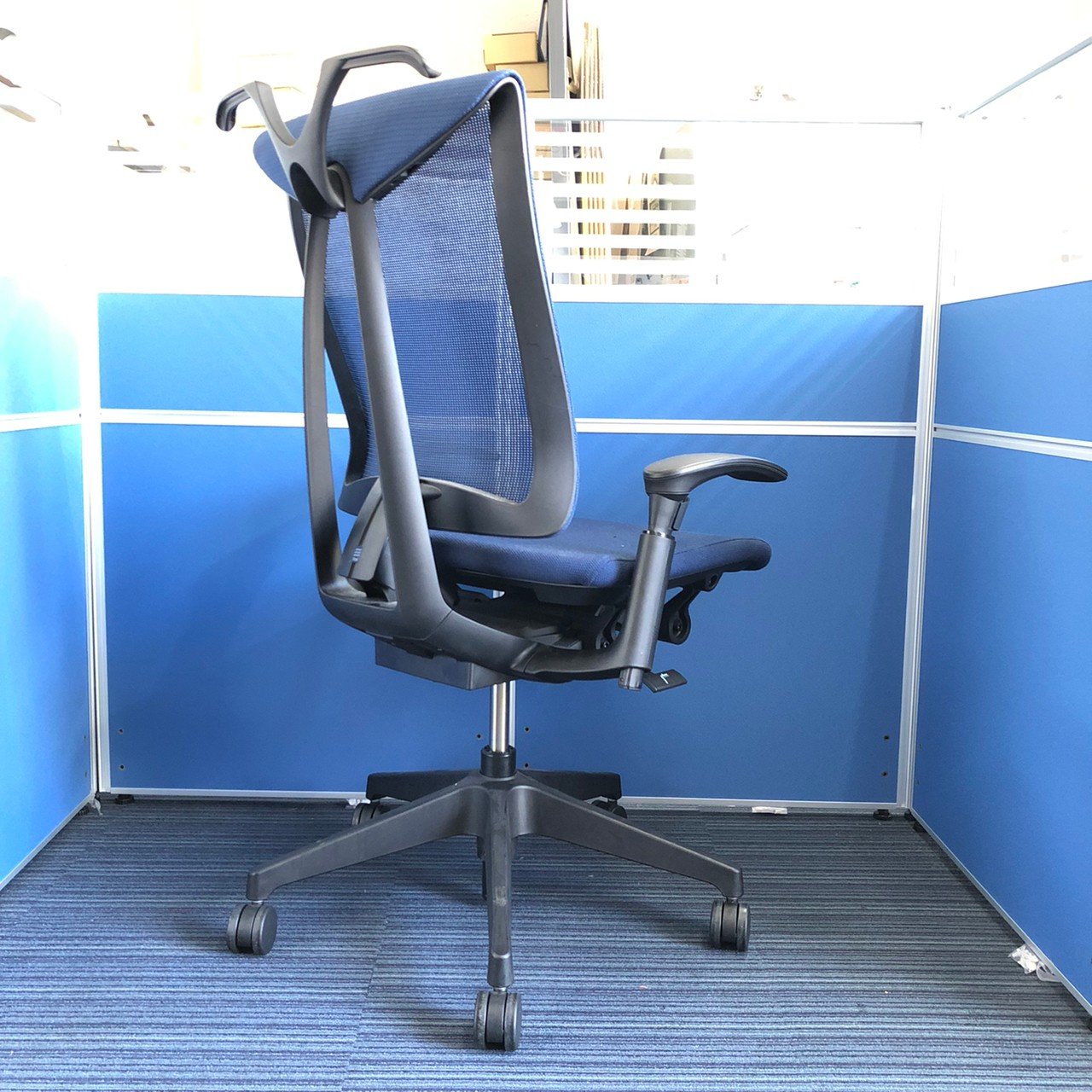 【座るとわかる快適さ!骨盤にしっかりフィット!チェア自らが動き座る人の体を支える「おもてなし」の心を体現した高級チェア! 】■イトーキ製(ITOKI) セレーオチェア 肘付ハイバック ■メッシュ背面 ■可動肘 ハンガー付 ■ストロングブルー
