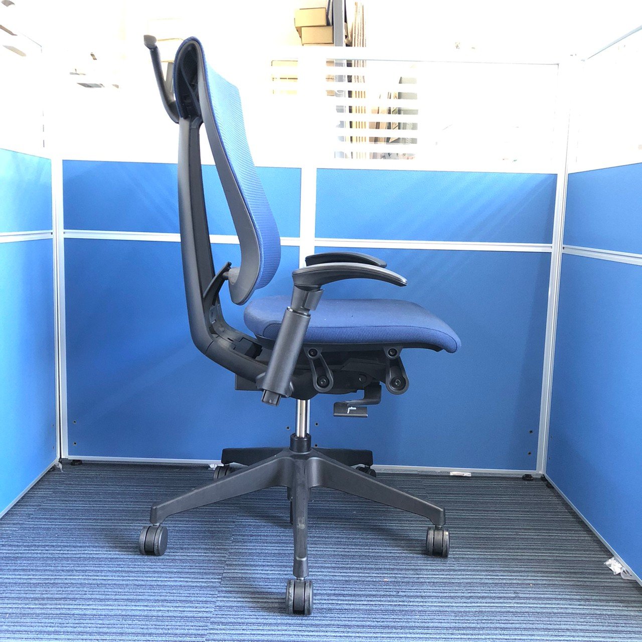 【座るとわかる快適さ・骨盤にしっかりフィットする!チェア自らが動き座る人の体を支える「おもてなし」の心を体現した高級チェア! 】■イトーキ製(ITOKI) セレーオチェア (celeeo) 肘付き ハイバック ■メッシュ背面 ■可動肘 ハンガー付 ■ストロングブルー×ブラックシェル【2506】弊社使用欄【A01021697】