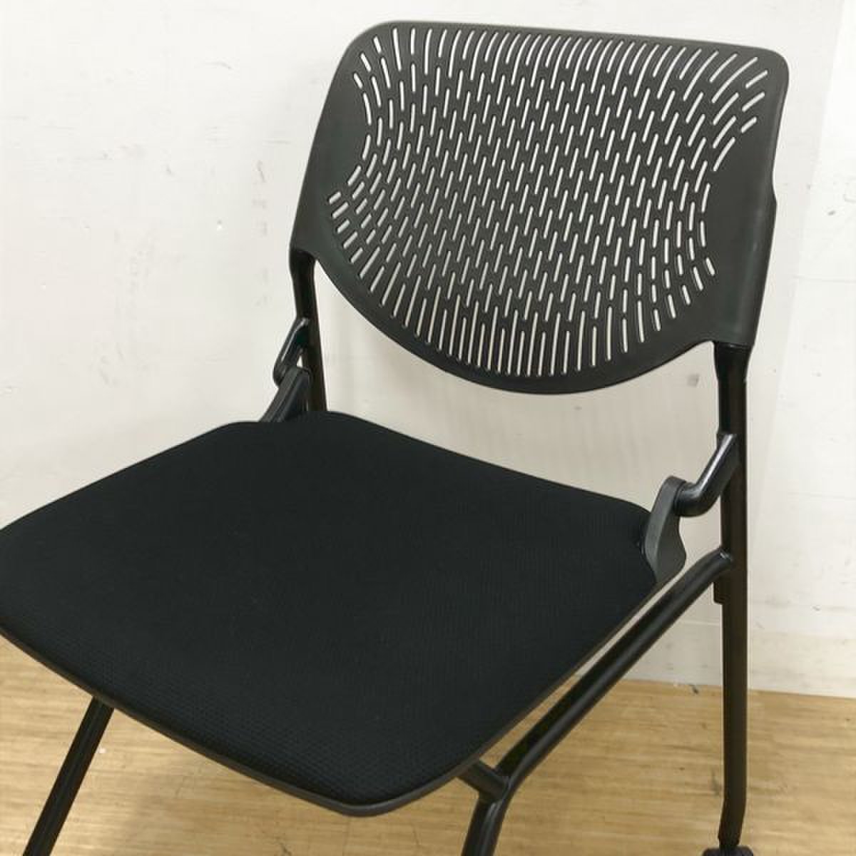 【スタイリッシュなデザインで座りやすい!】■オカムラ(okamura)製 ルナ(Runa)チェア ネスティングチェア ミーティングチェア 会議用 ■背面樹脂メッシュ ■ブラック 【フレキシブルに使える!便利なネスティングチェア!】