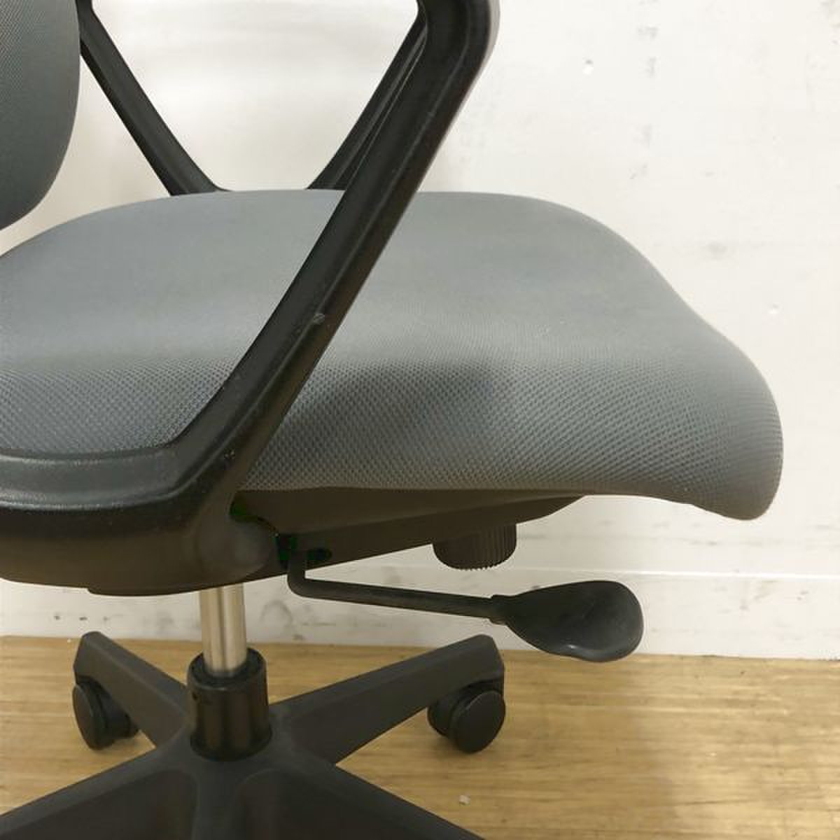 なので、「どれでも同じでしょう」と過小評価されがちですが、さすがのオカムラ製!座面の無段階上下調整やリクライニングの反発の強さ調整などに加え、リクライニンする際に足首の位置を支点にして動く、アンクルチルトリクライニングという特殊な機構が搭載されています。「人間が寄りかかる動き」にぴったりとフィットし、快適さをもたらしてくれます。