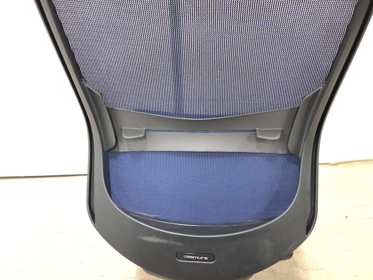 【A00962920】【デスクワークの負担を軽減!】■オカムラ製 エスクードメッシュチェア ブルー ■背中のメッシュが快適にフィット感!【在庫入替セール】