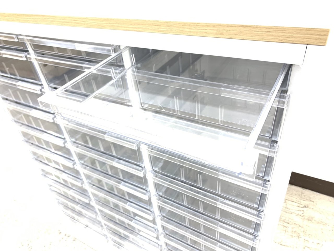 【書類・備品整理の必需品!】【珍しいクリトレが入荷!3列×浅型11段+深型5段】■イトーキ(ITOKI)製 シンラインシリーズ クリスタルトレー ローキャビネット ■3列×浅型11段+深型5段 ■天板・ベース付 ■色:ホワイト