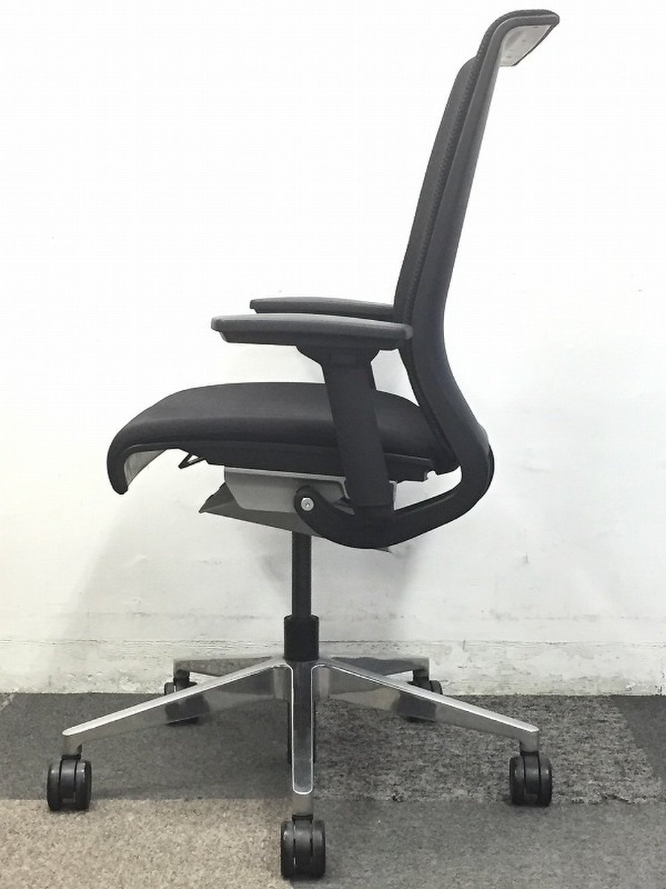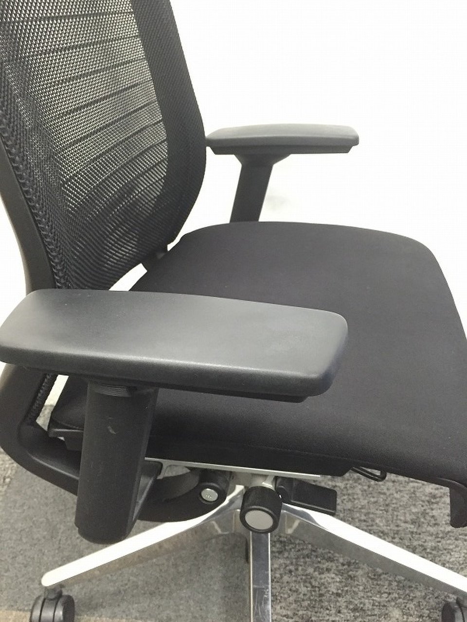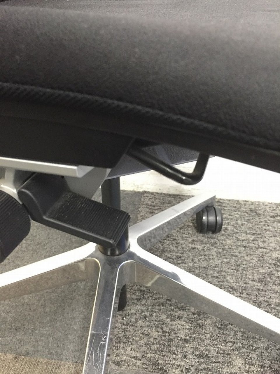 快適な座り心地に不可欠な調節機能である、上下昇降、座面の奥行き調整、リクライニングなどを備えており、操作もわかりやすく好評です。 特に、座面の奥行きは、座面下の左右に通った細いバーで調整でき、座ったままで軽やかに滑るように調整が可能です。 価格面では、新品では高めですが、中古は流通も多く、定価の3割前後の価格で高級チェアの座り心地を手に入れることができます!