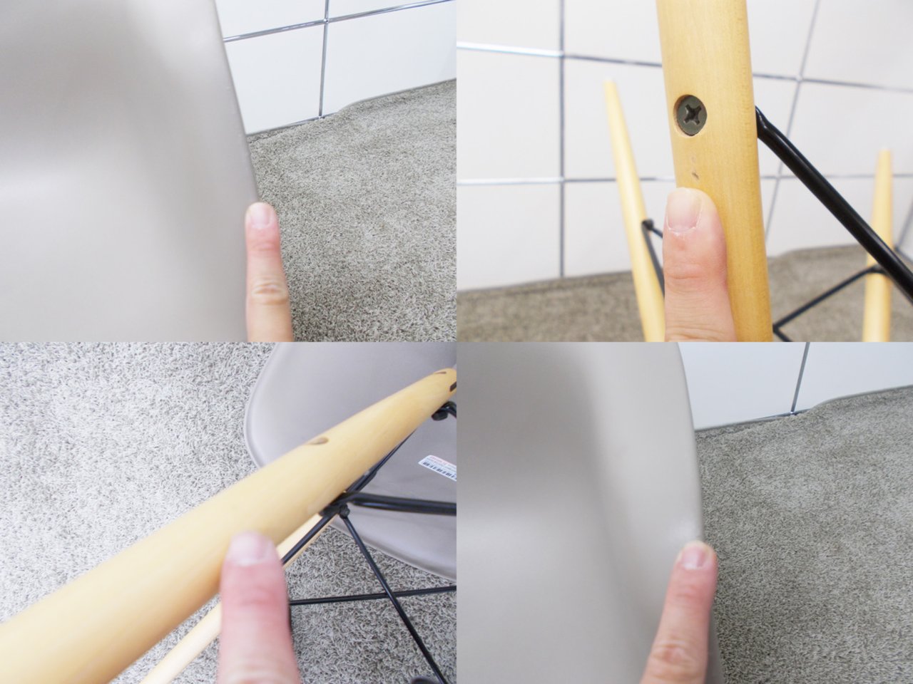 - 目立つ箇所あり傷・破れ・ほつれ・へたり・しわが多数または深い傷・破れ・ほつれ・へたり・しわが一部ある。※座面・背もたれ、シェル、脚部等にある。
